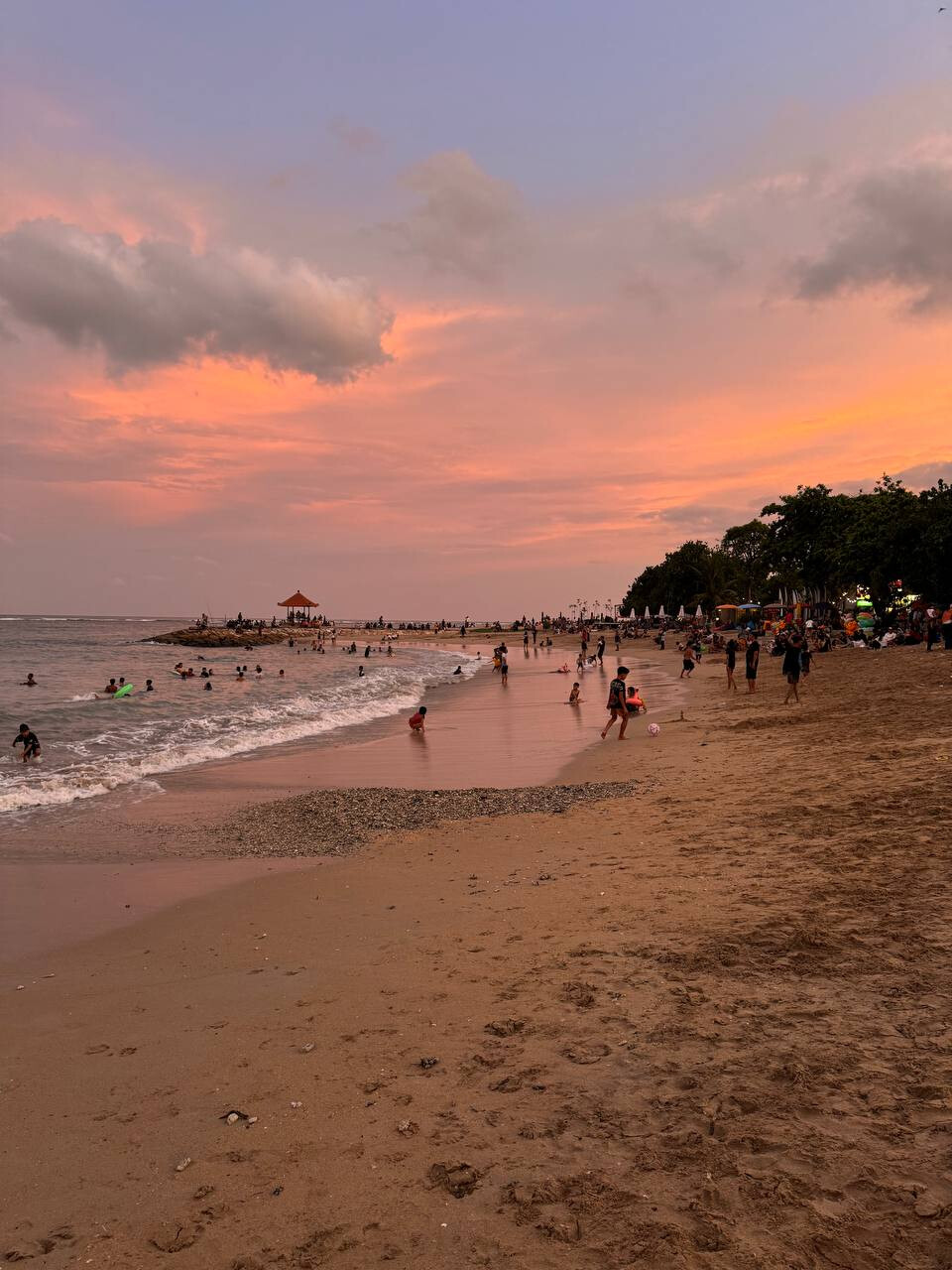 В выходные вечером очень много местных жителей, которые приезжают семьями, так как это один из любимых пляжей балийцев.
