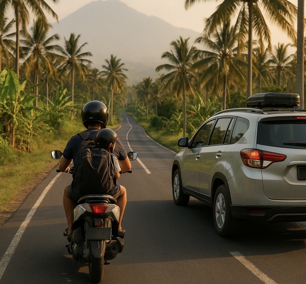 Главное преимущество автомобиля — это комфорт и безопасность. Ехать с кондиционером, в закрытом от шума и пыли салоне, конечно же, приятнее. Ну и не стоить забывать, что при ДТП шанс получить травмы у байкера в разы выше. Но все, кто хотя бы раз ездил по острову на двухколесном транспорте скажут вам, что это ни с чем не сравнимые ощущения. Если выезжать на балийские дороги с головой, не забывая об осторожности, а в идеале пройдя хотя бы минимальное обучение, то яркие эмоции вам обеспечены. Многие из-за этого и влюбляются в остров.