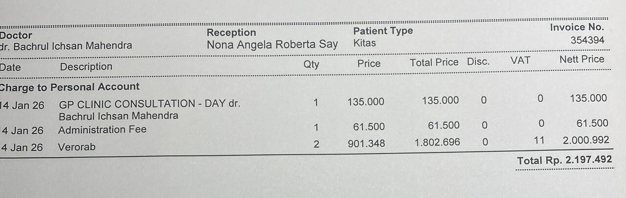 Консультация доктора по визе Китас: 200 000 IDR (пон-суб), 615 000 IDR (воскр. и праздники)