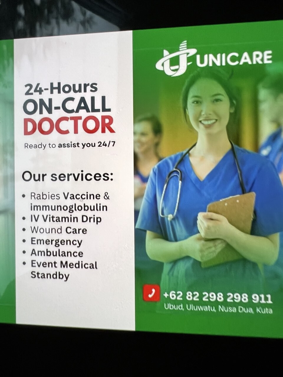 Вот местный врач с выездом, приезжает командой из 3х человек со всем оборудованием +62 859-5481-5088