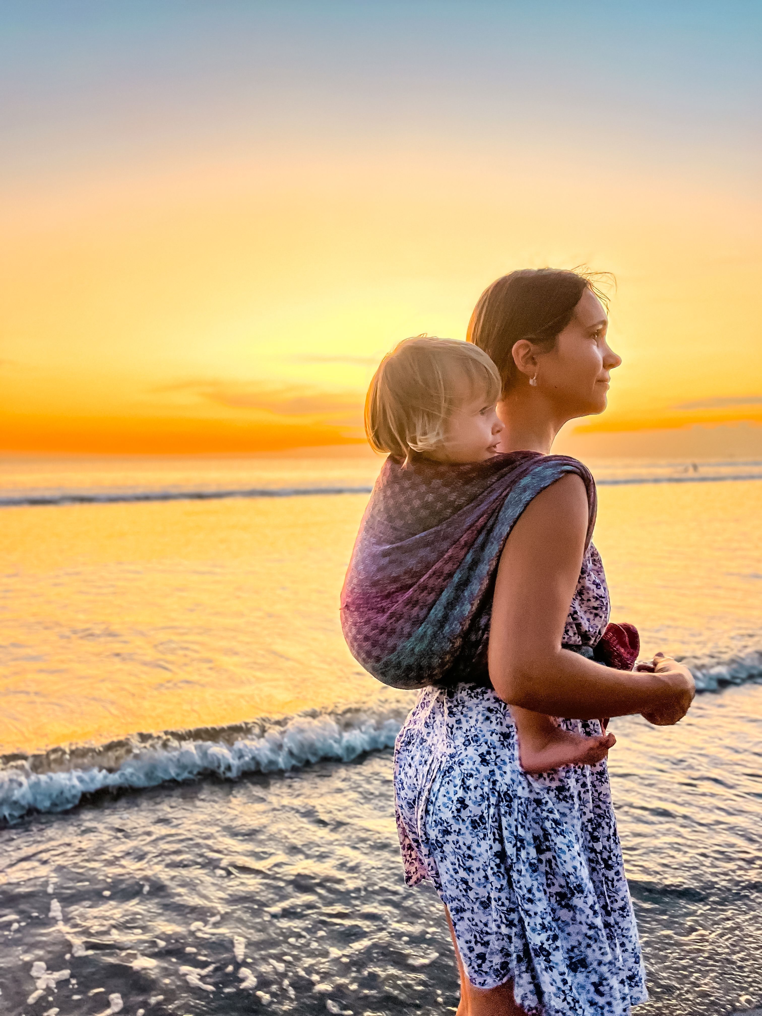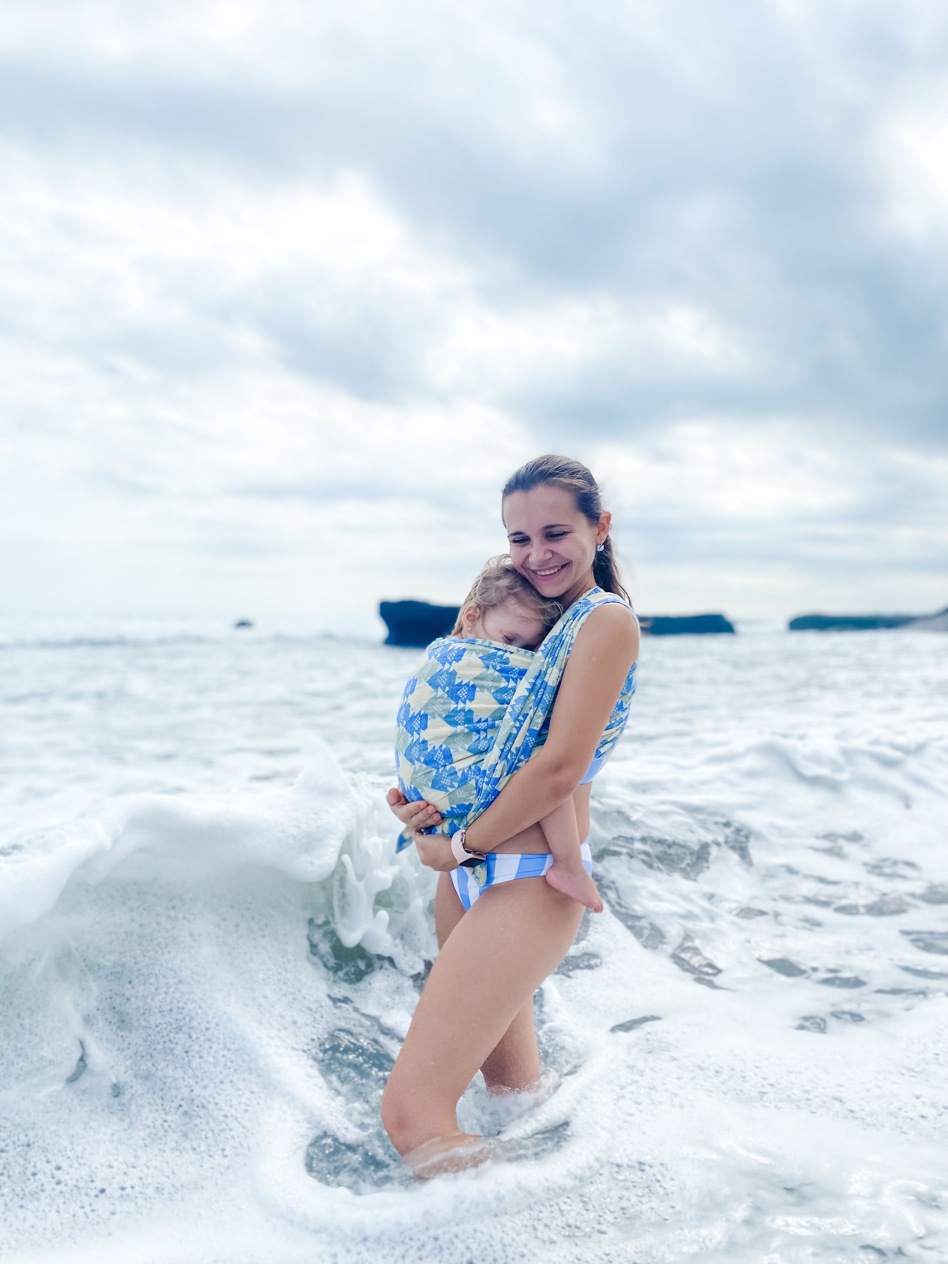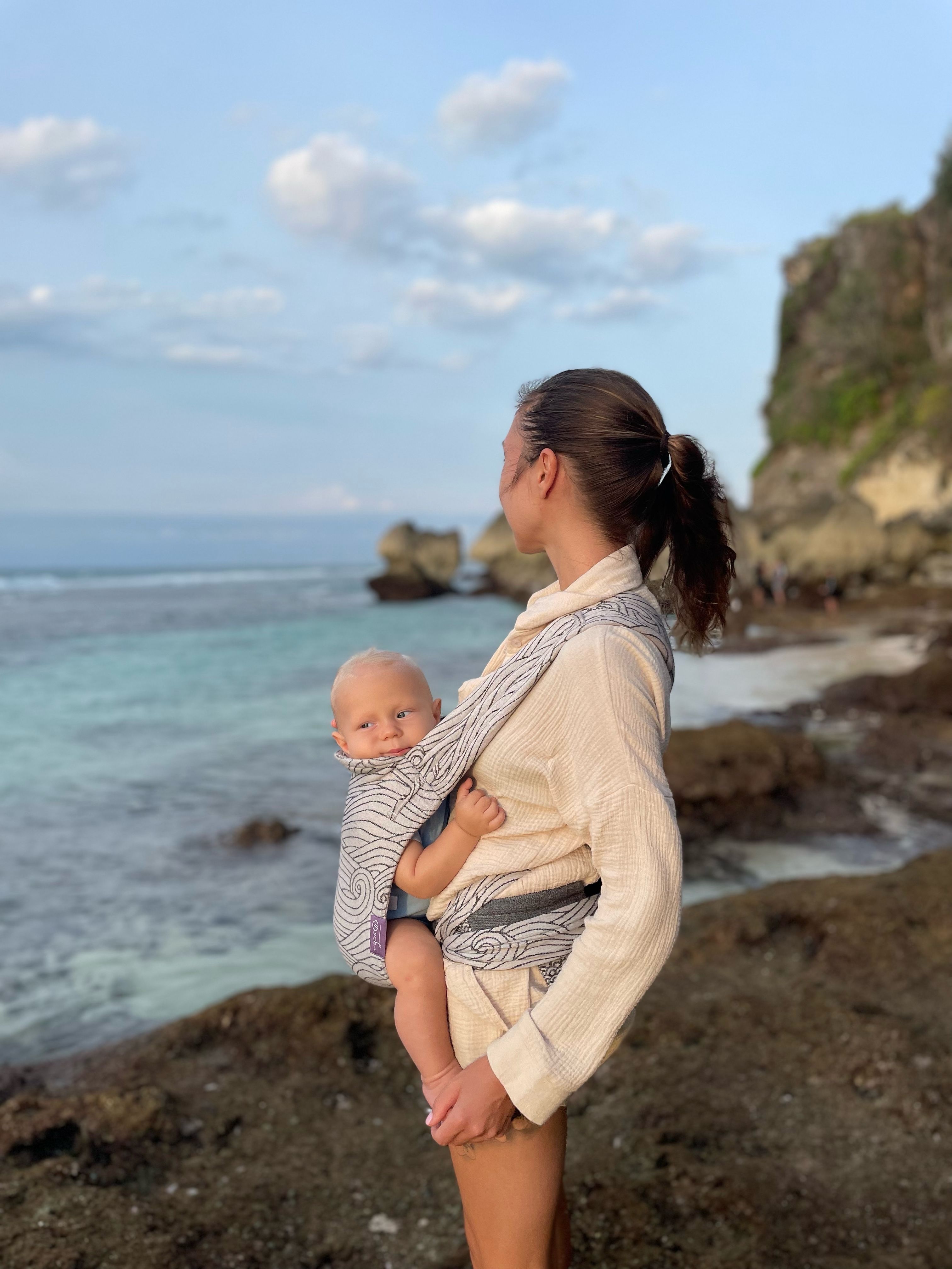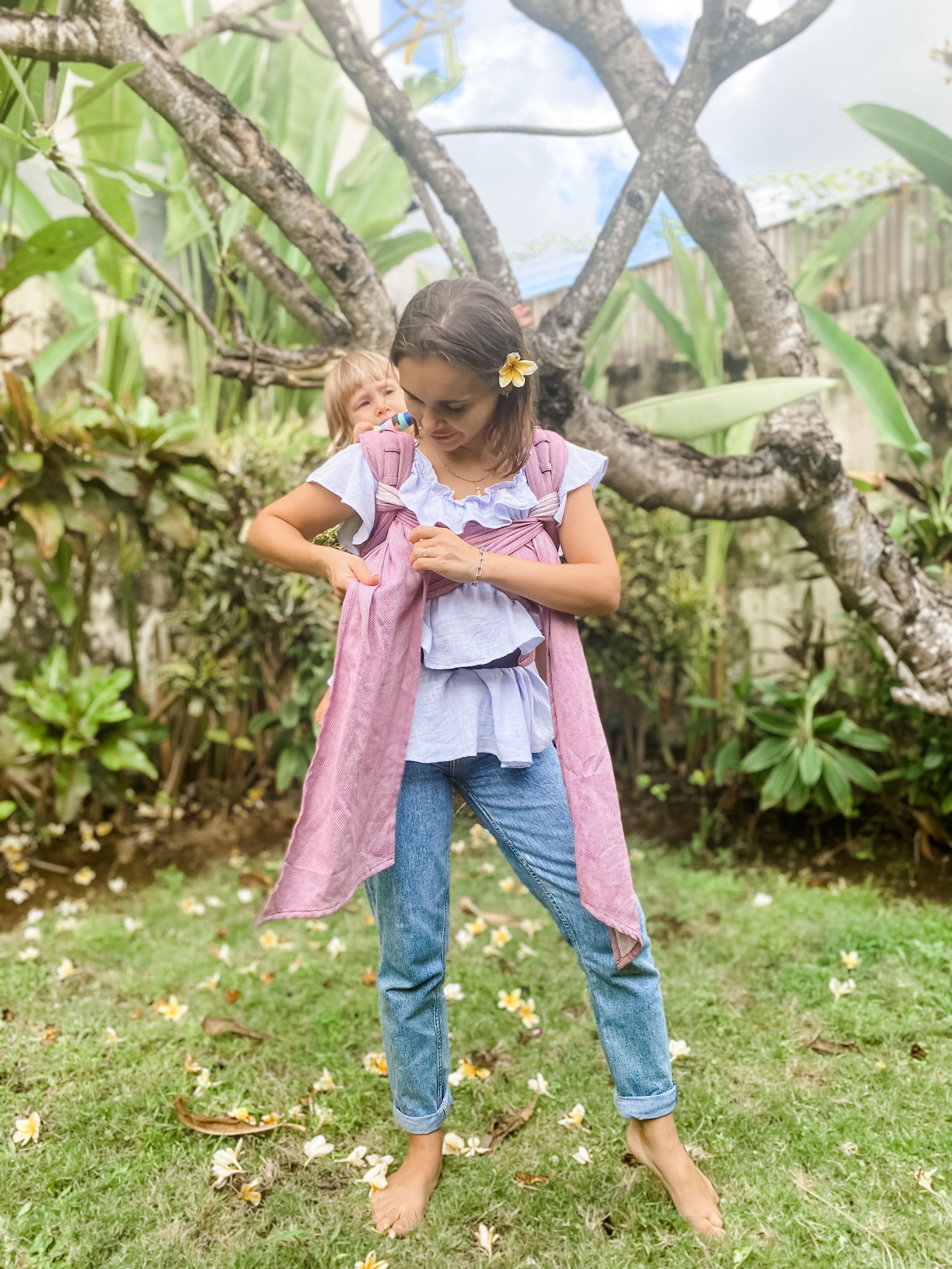 Мотать не сложно, посмотрев видео на ютубе, стоит несколько раз попробовать и все получится, а если не получается, то на Бали есть прекрасное сообщество мам, которые могут помочь в освоении этого нехитрого ремесла. Новичкам рекомендуем начинать с базовой намотки КНК (крест над карманом) — она довольно проста и подходит новорожденным.