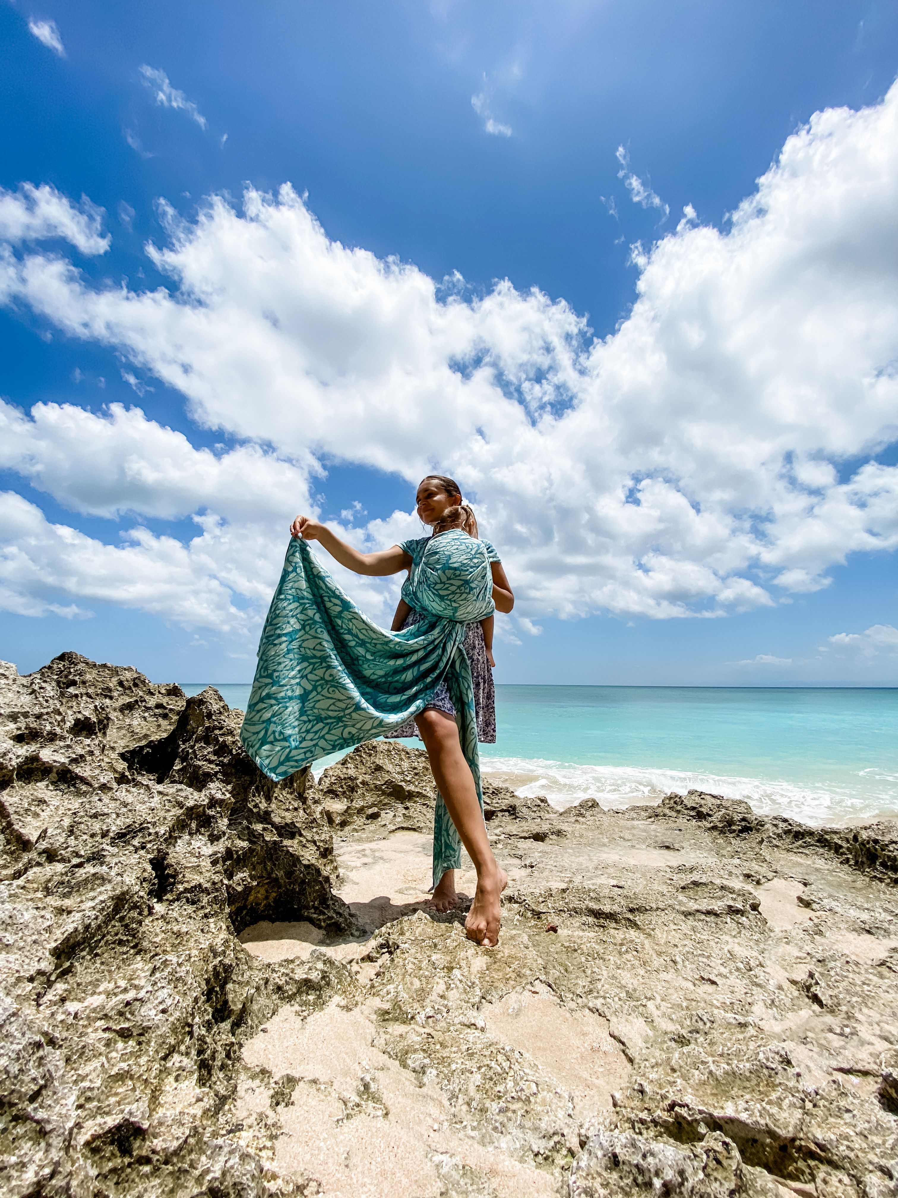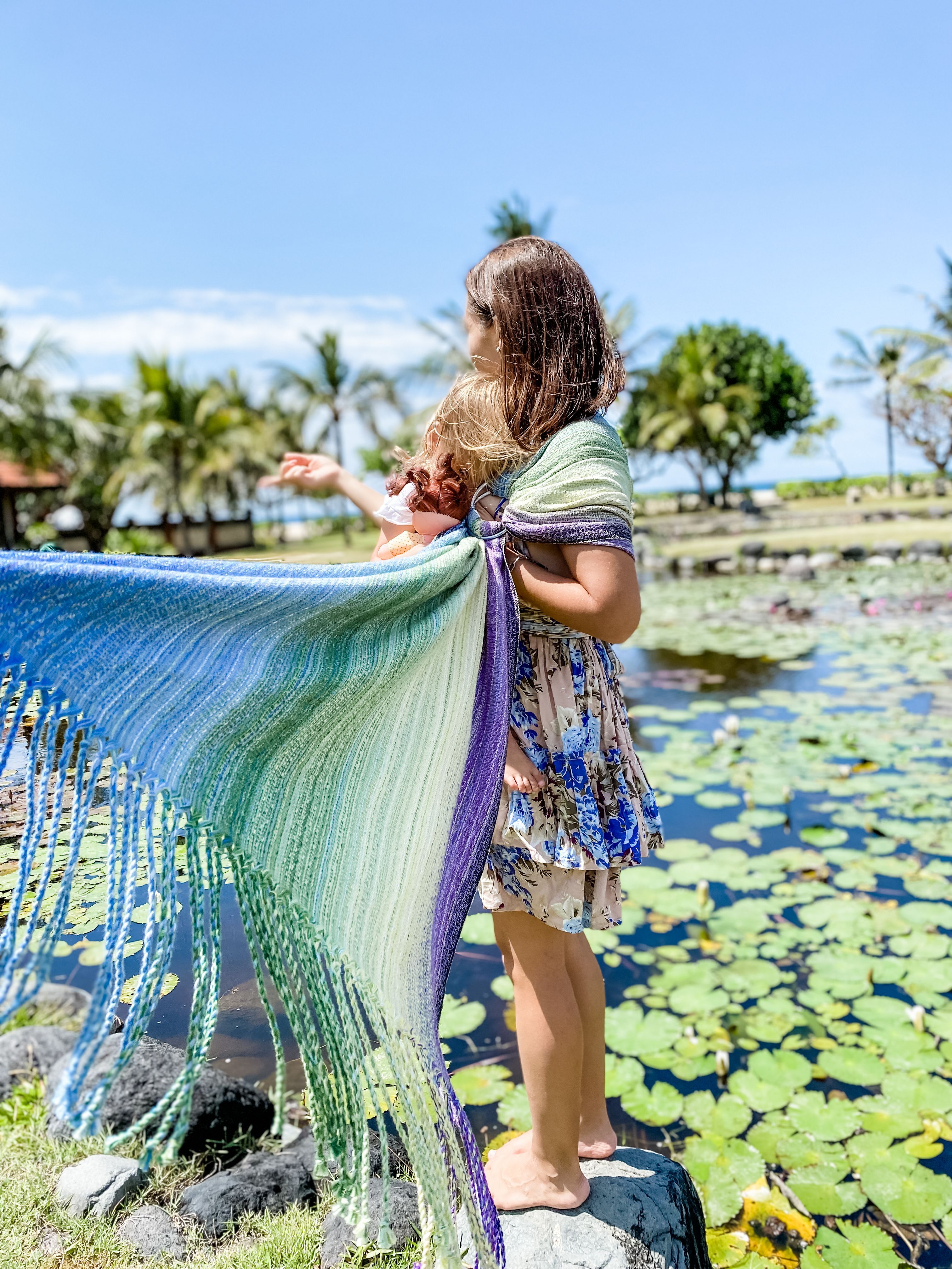 Для выбора шарфа необходимо учитывать вес малыша, опыт родителя и местный климат. Понятно, что Бали — это жаркий и влажный остров. Поэтому рекомендуем выбирать шарфы из 100% хлопка или смешанные составы, такие как хлопок/лен, хлопок/конопля, хлопок/шелк, хлопок/бамбук или авторские миксы из этих же компонентов. Шарфы «для Бали» должны быть тонкими, рыхлыми и продуваемыми.