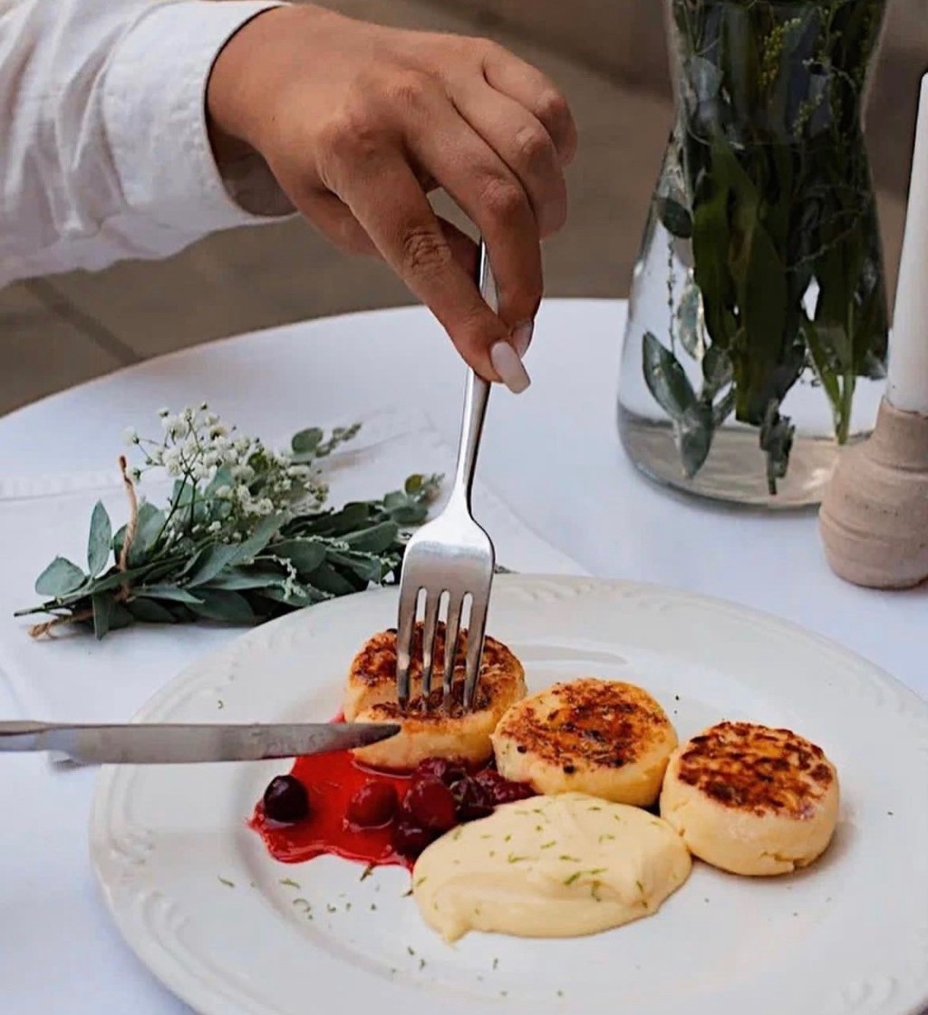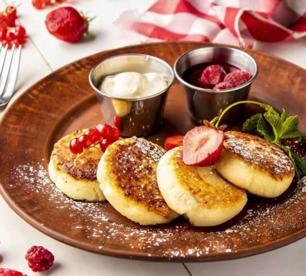 Сырники с хрустящей корочкой и воздушной серединой. По вкусу невероятно нежные и сочные. Ингредиенты подобраны идеально, текстура восхищает.