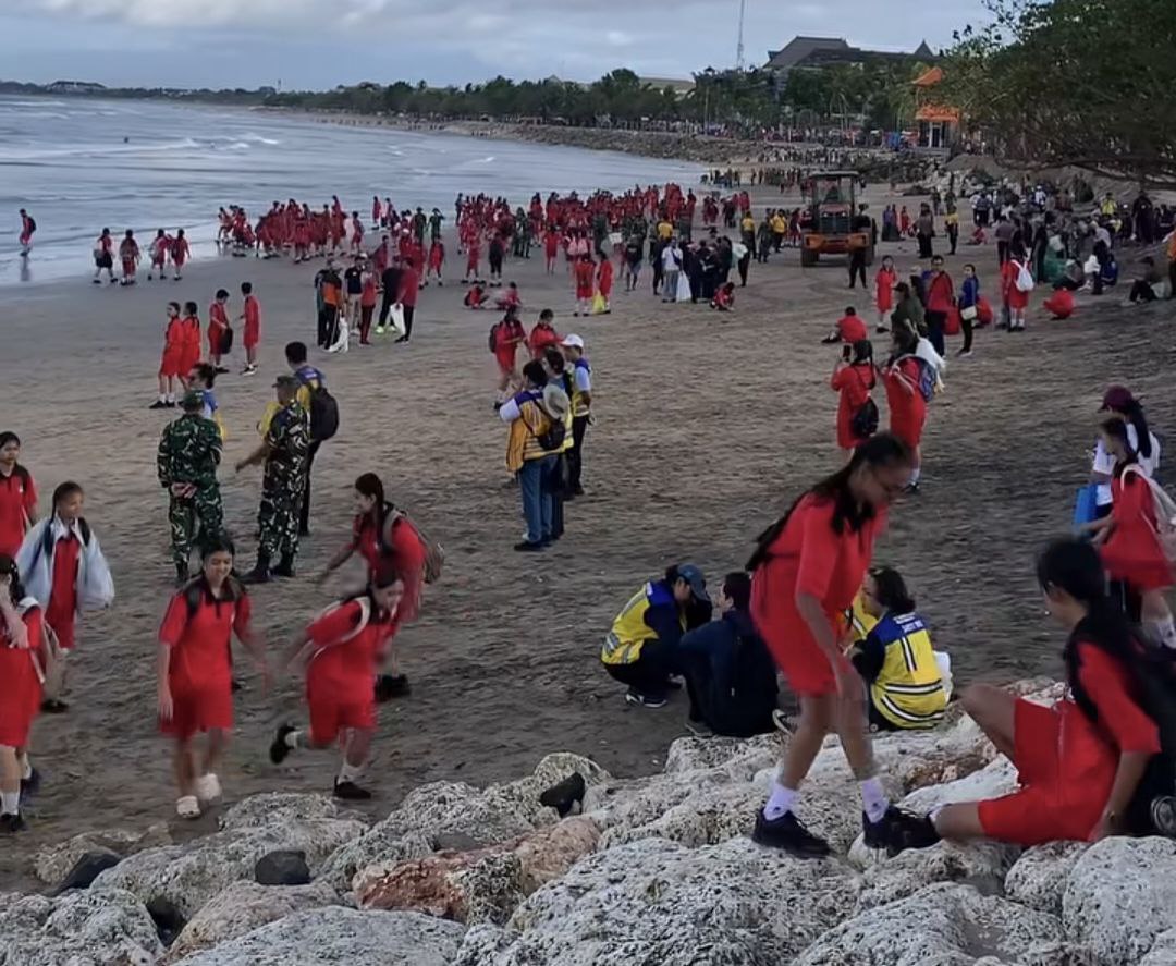 На побережье Бали на уборку вышли школьники: в акции в разных районах острова участвовали ученики вместе с жителями, полицией и военными. Дети собирали мусор вручную вдоль пляжа как часть экологического воспитания и в качестве напоминания, что проблема касается всех поколений.