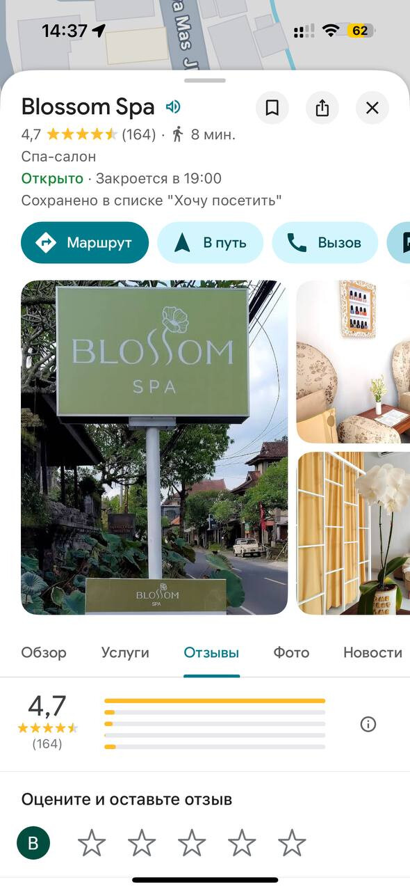 Салон массажа имеет массу положительных отзывов в Google Maps.
