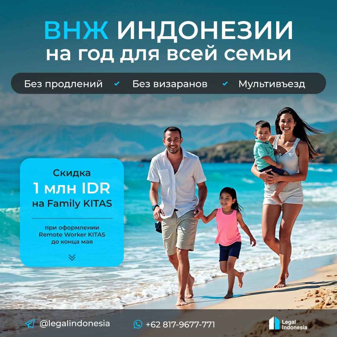 Скидка 1 млн IDR на каждый семейный КИТАС при оформлении основного КИТАС удаленщика.