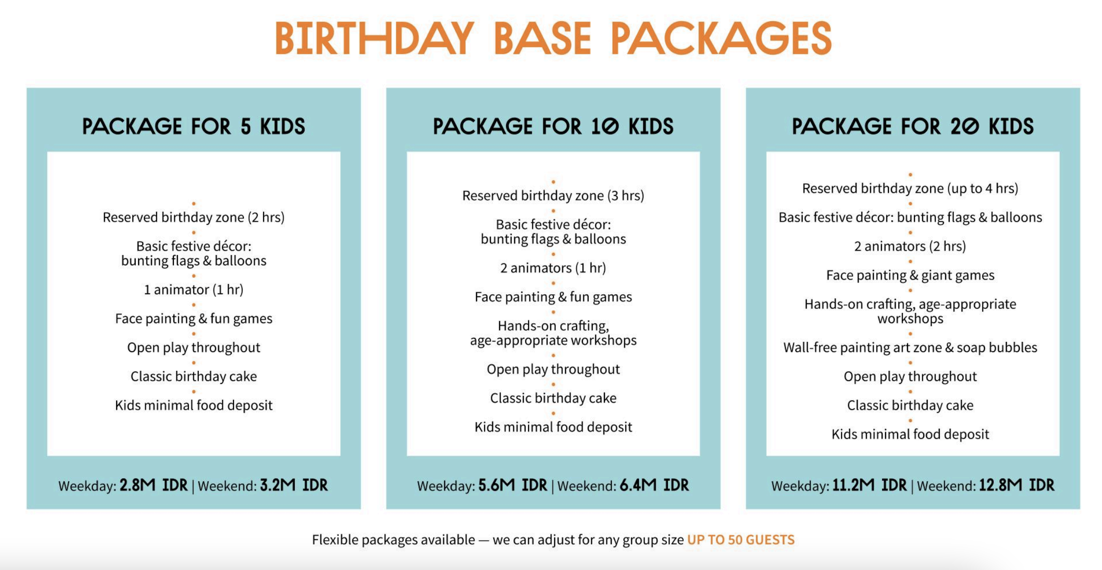 Вход - 75k. Есть пакеты на празднование дня рождения.