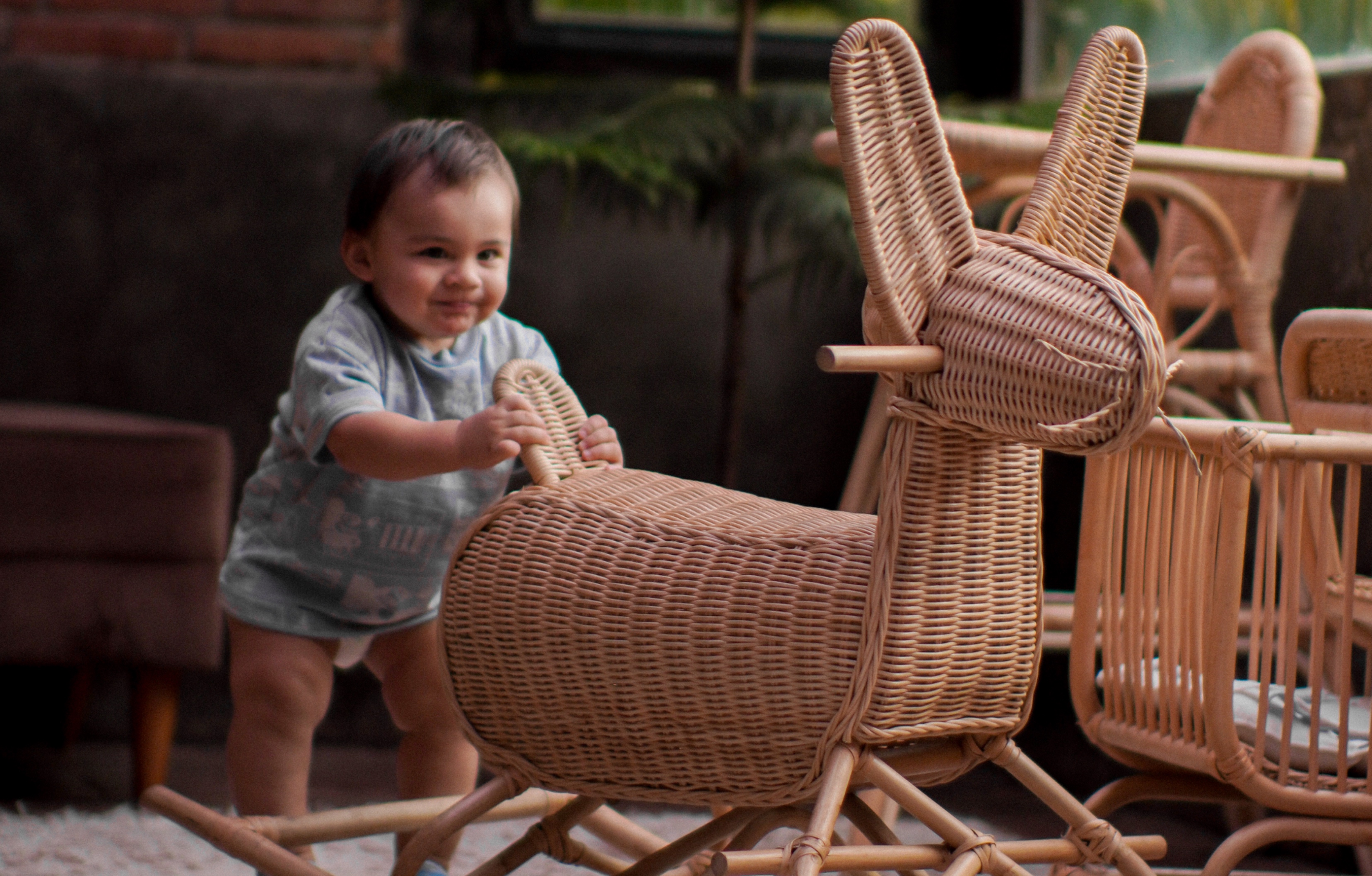 Есть маленький батут, горка для малышей, беговел, машинка, столик. Кондиционера, конечно же, нет.