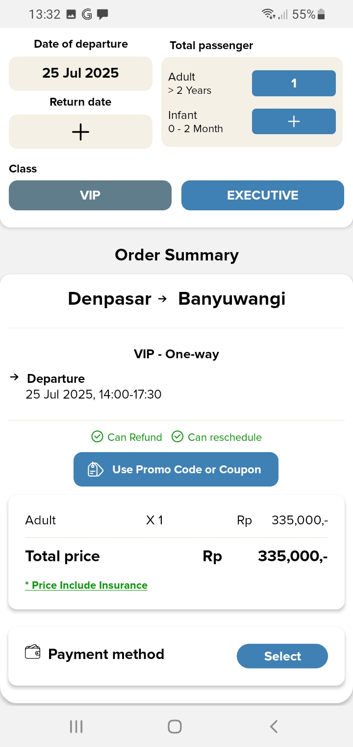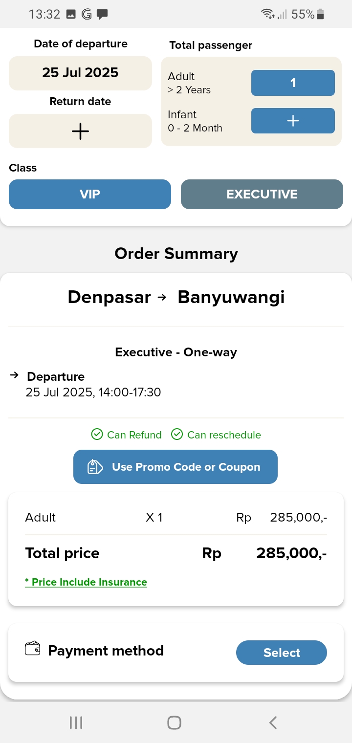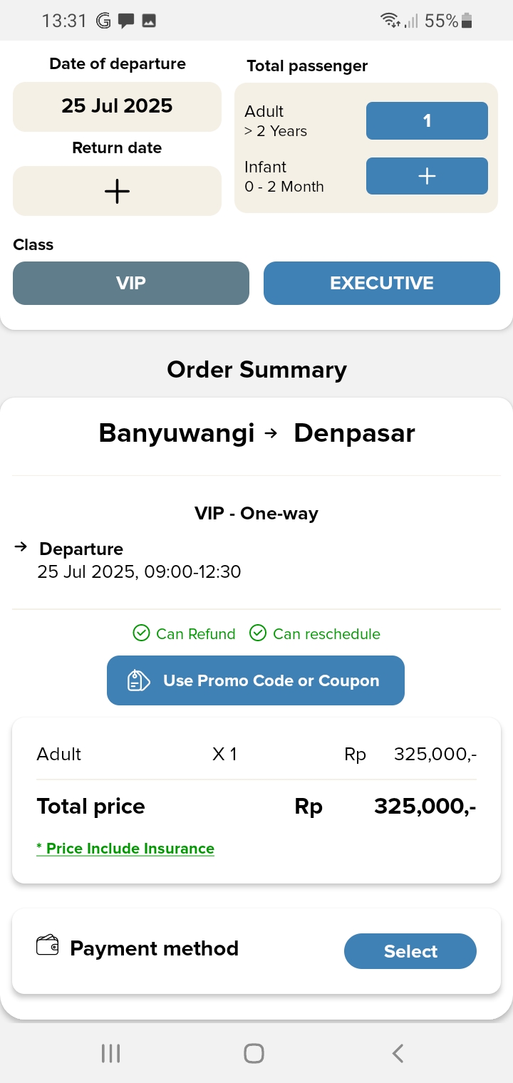 Стоимость билетов для иностранцев (включая владельцев КИТАС/КИТАП) — 275 000 IDR (Executive) и 325 000 IDR (VIP) из Баньюванги; из Денпасара — на 10 000 IDR дороже.