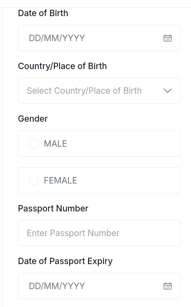 Date of Birth (Дата рождения): ДД/ММ/ГГГГ