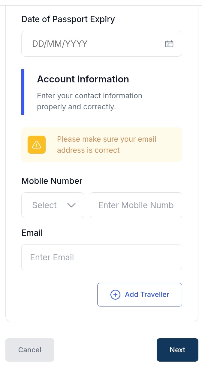 Если летит семья, то сначала заполняются данные на главу семьи, потом добавляется информация о детях (кнопка “Add Traveler”).