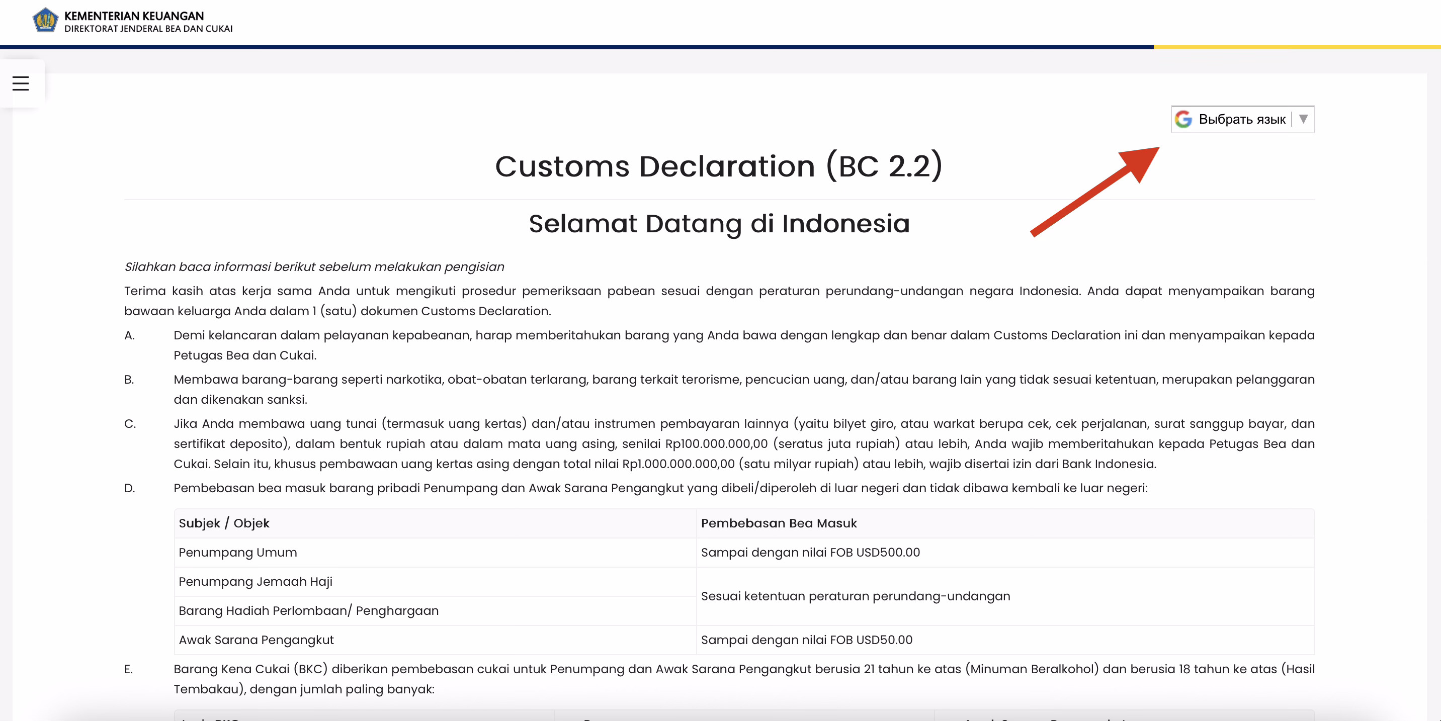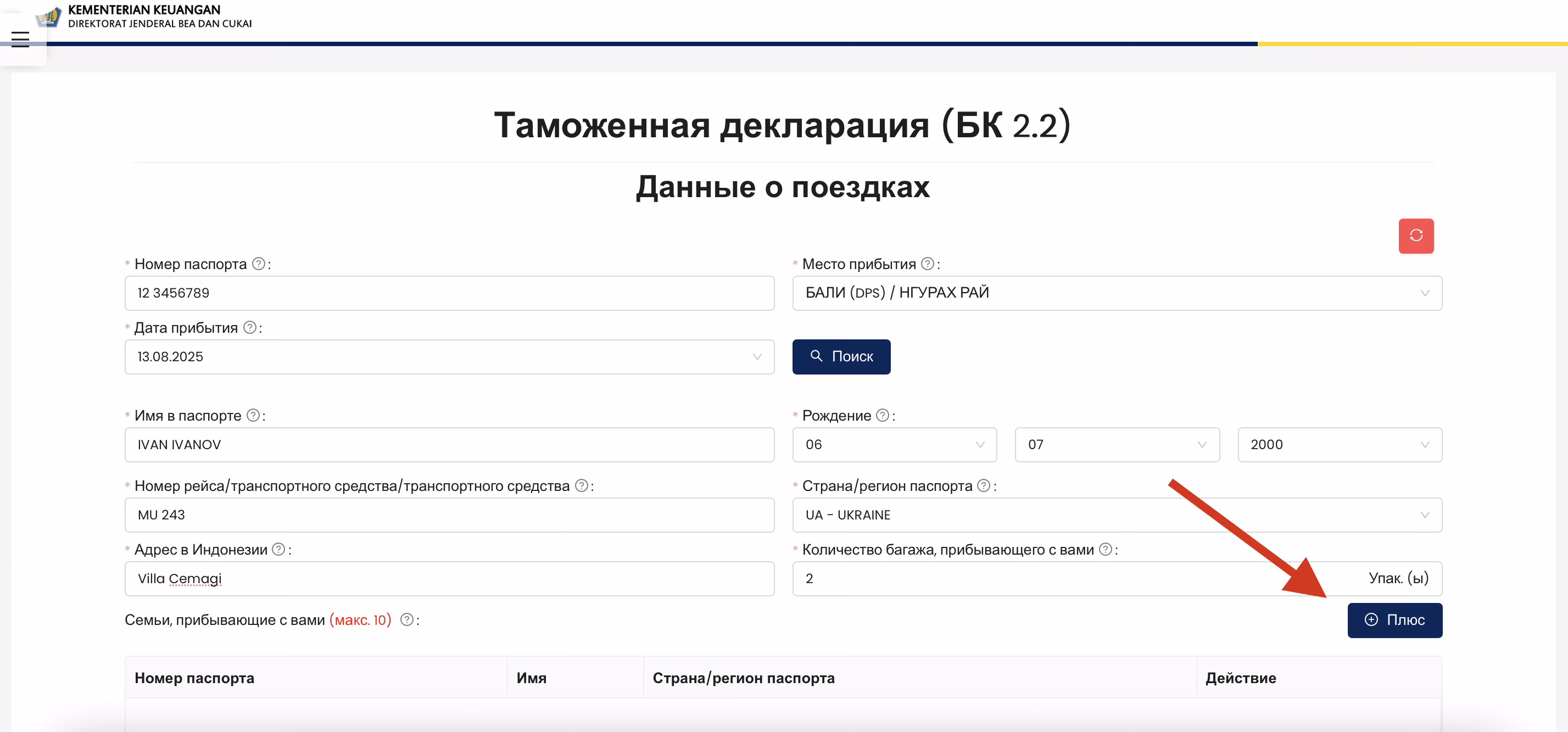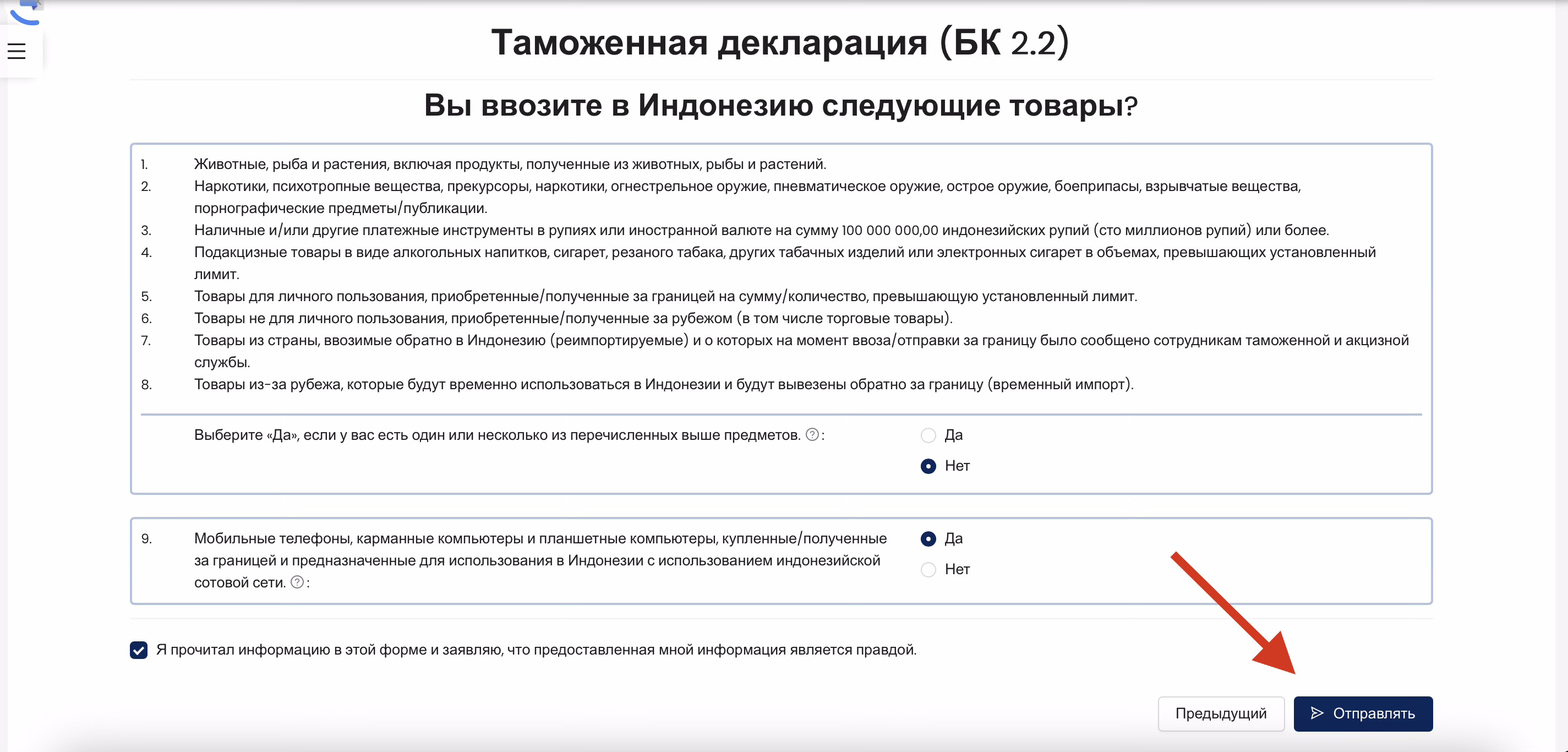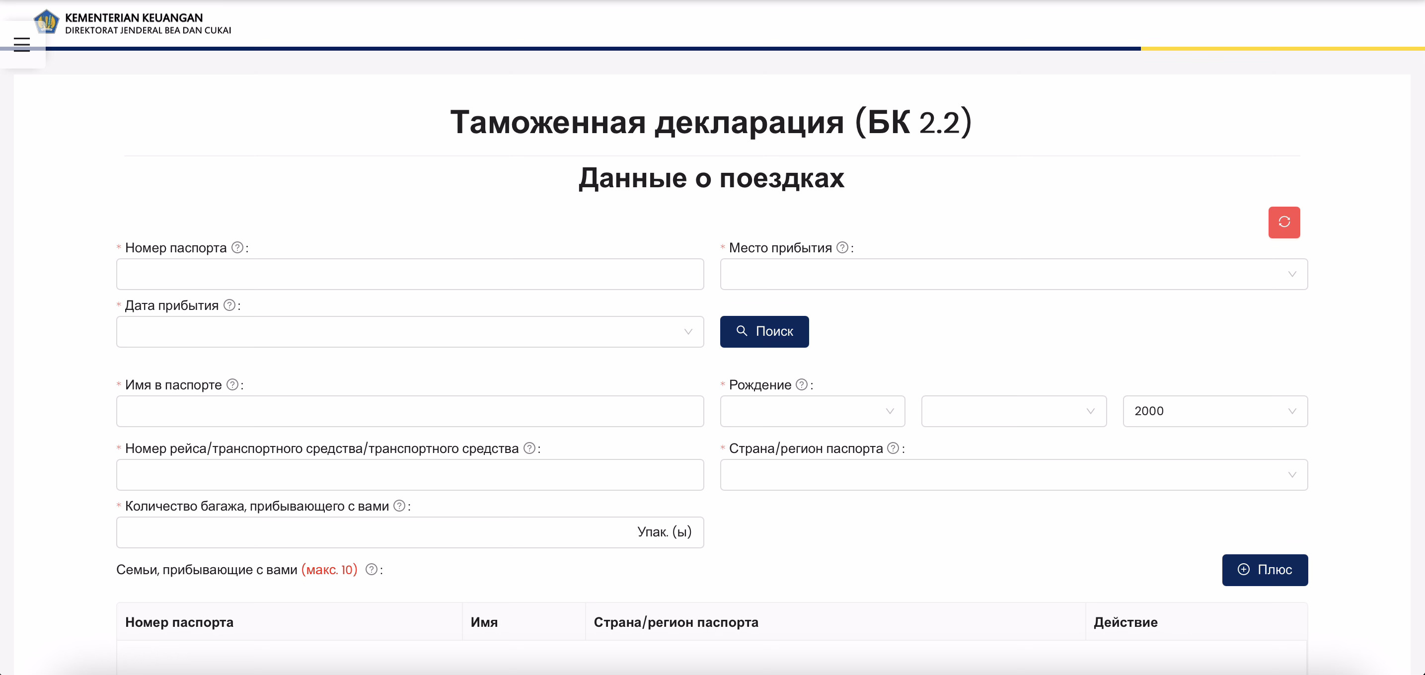 Декларацию нужно заполнить не ранее, чем за два дня до прилета в Индонезию. Процесс несложный, займет всего несколько минут. На одну семью требуется одна декларация.