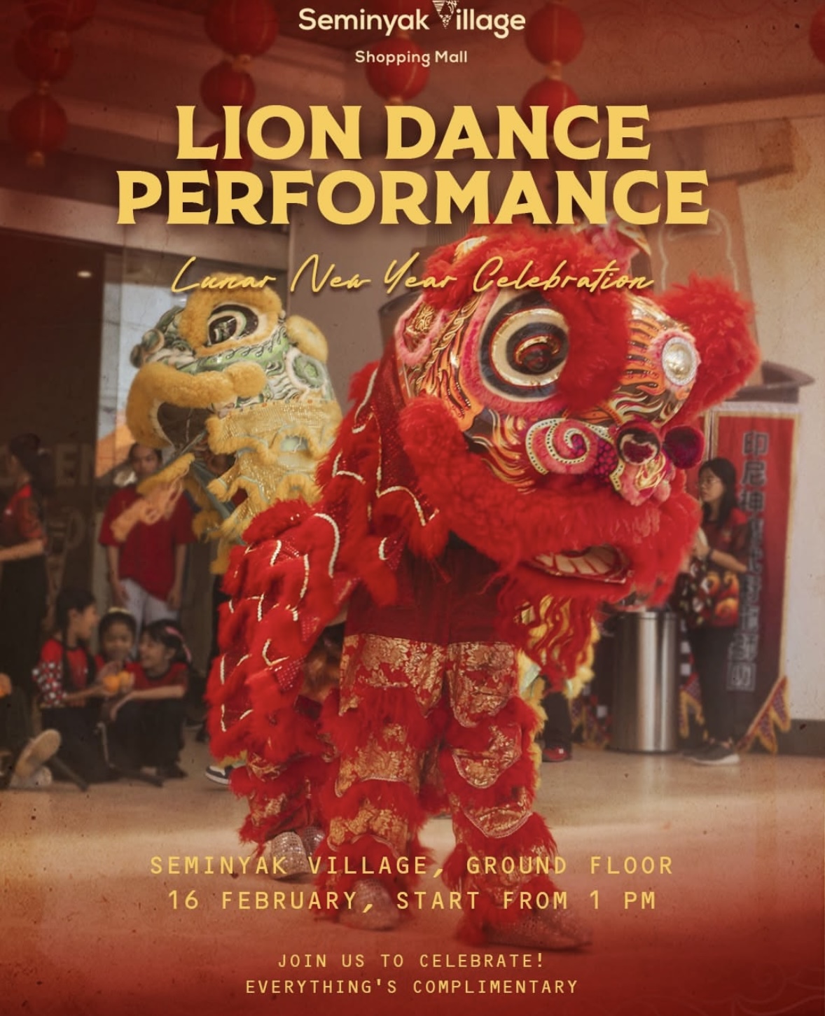 16 февраля в 13:00 на первом этаже — выступление танца льва. Вход свободный, формат короткого праздничного шоу.