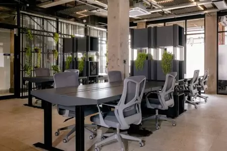 Светлые помещения, много воздуха и зелени, удобные столы, продуманное зонирование. Есть зоны для фокуса, общения, отдыха и звонков. Пространство ощущается живым, но без суеты.