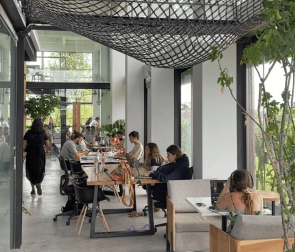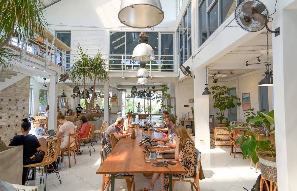 Один из самых известных коворкингов Санура и всего восточного побережья. Большое пространство, несколько этажей, разные форматы рабочих зон и сильное сообщество.