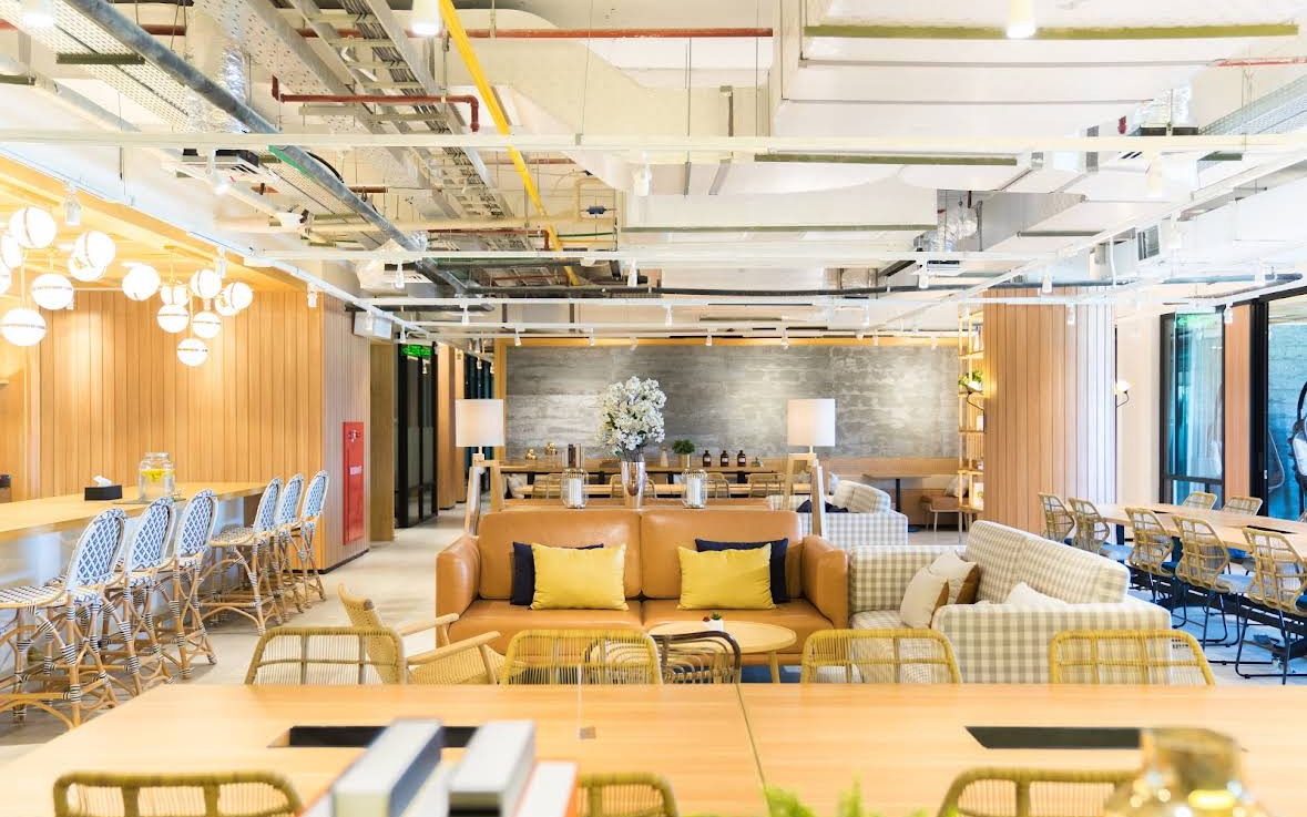 Indoor и semi-outdoor зоны, много растений, мягкие диваны и уютные уголки. Пространство наполнено движением: здесь работают, общаются и участвуют в событиях.