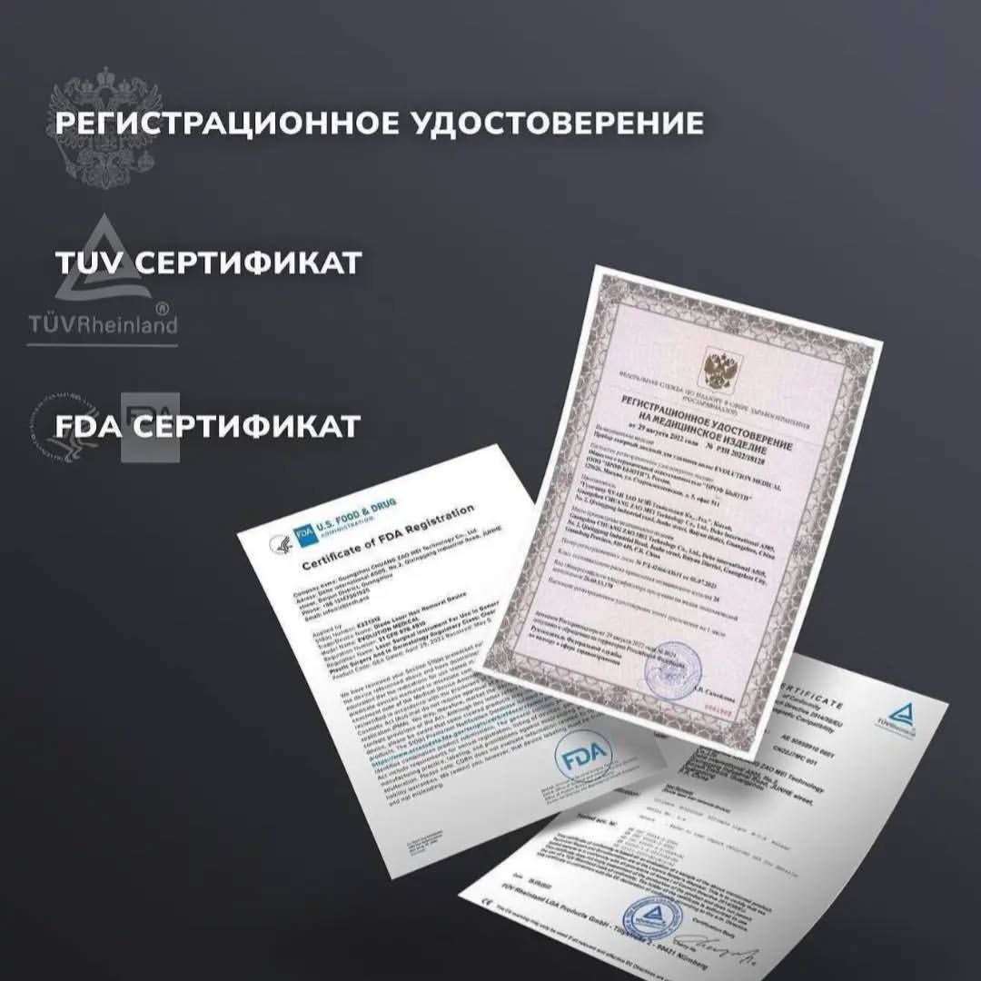 Также имеется сертификат FDA, подтверждающий, что лазеры прошли все необходимые клинические испытания и полностью безопасны плюс РУ РЗН 2003/20076.