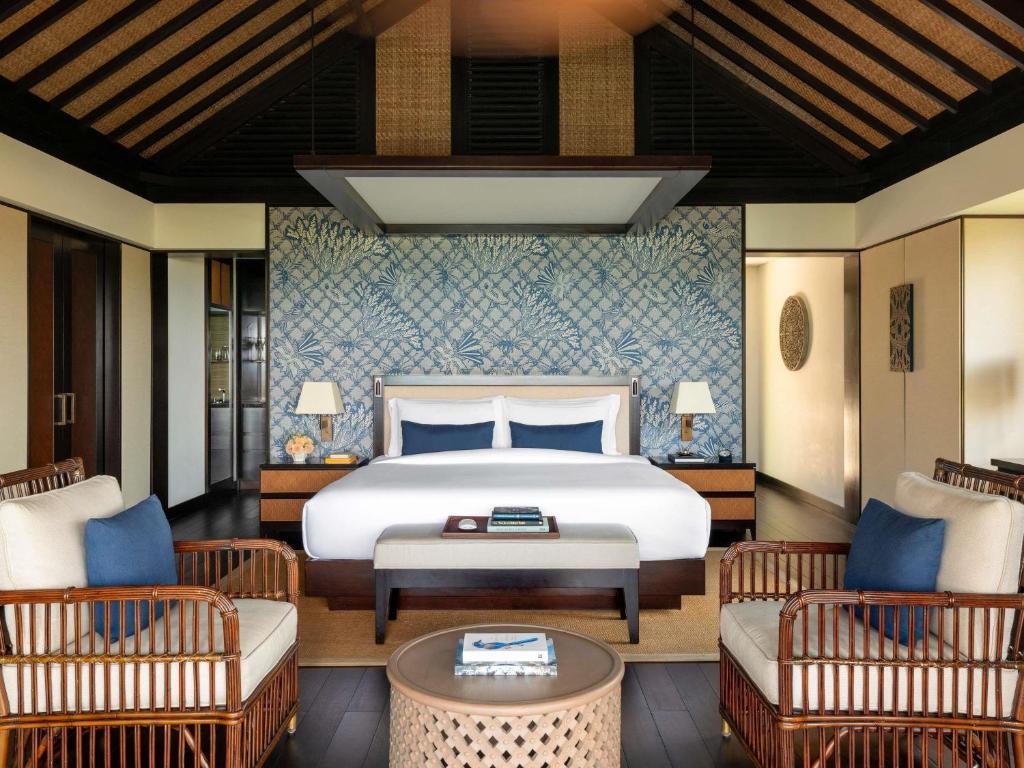 Four Seasons Resort Bali at Jimbaran Bay — это исключительный курорт на побережье Джимбарана, предлагающий роскошные виллы и коттеджи в традиционном балийском стиле с просторными спальнями, ванными комнатами под открытым небом, частными бассейнами и террасами с видом на океан или тропические сады. Гости могут наслаждаться расслабляющими спа-процедурами мирового уровня, дегустациями свежих морепродуктов и аутентичных балийских блюд в нескольких ресторанах и барах, а также разнообразными активностями на пляже — от йоги и водных видов спорта до кулинарных мастер-классов и культурных экскурсий. Курорт идеально подходит для романтического отдыха, медового месяца, семейного отпуска или уединённого релакса, сочетая высокий уровень комфорта, внимание к деталям и гармонию с природой для незабываемого пребывания.