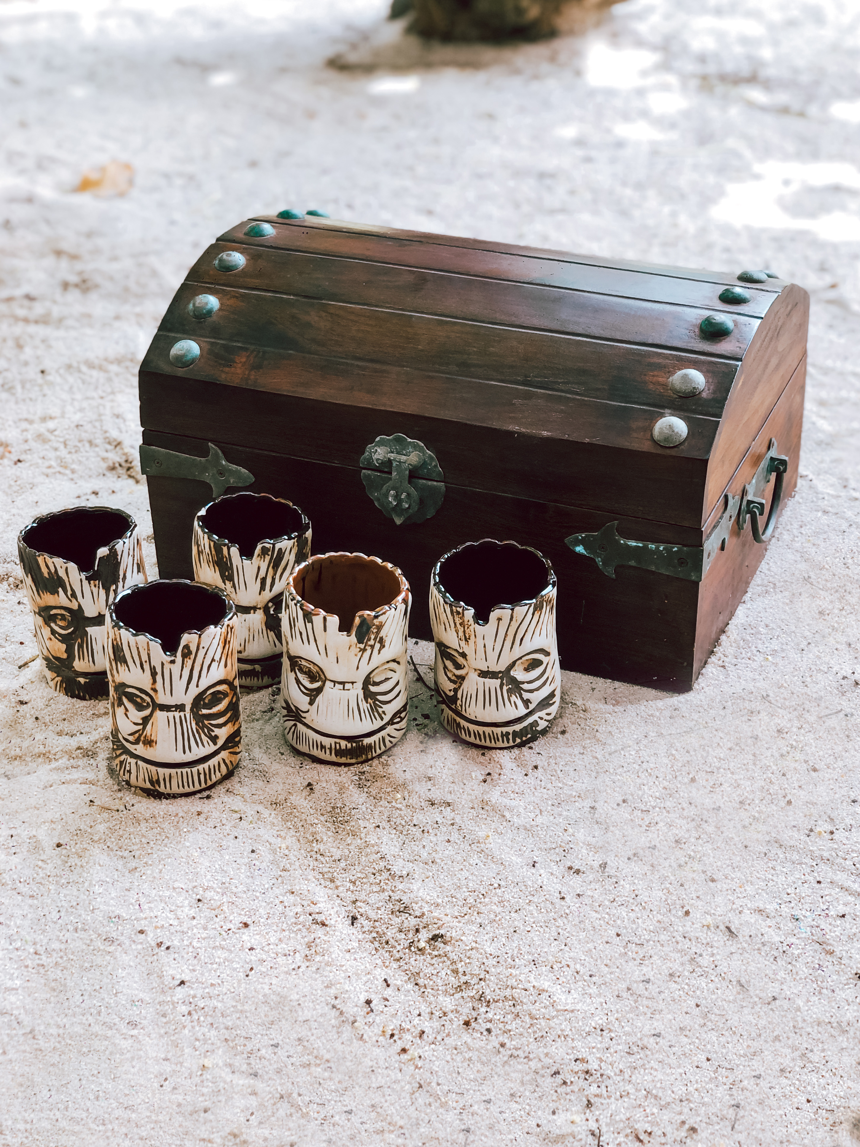 Есть отдельное меню для ланча и для ужина. Меню для ужина действует с 18.00. Ланч – тапасы – 70.000 – 95.000 рупий (выбор небольшой). Салаты – 85.000 – 175.000. Пицца – 110.000 – 135.000. Основные блюда – 125.000 – 265.000. Очень удобно, что в меню сразу отмечены блюда со свининой, вегетарианские блюда и острые. Смузи и соки – 45.000 рупий. Пиво – 35.000 – 70.000 рупий. Коктейли – 100.000 – 120.000. Коктейли подаются в интересных бокалах, напоминающих фигуры идолов с островов Полинезии.