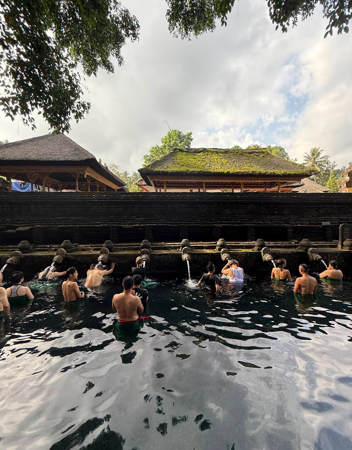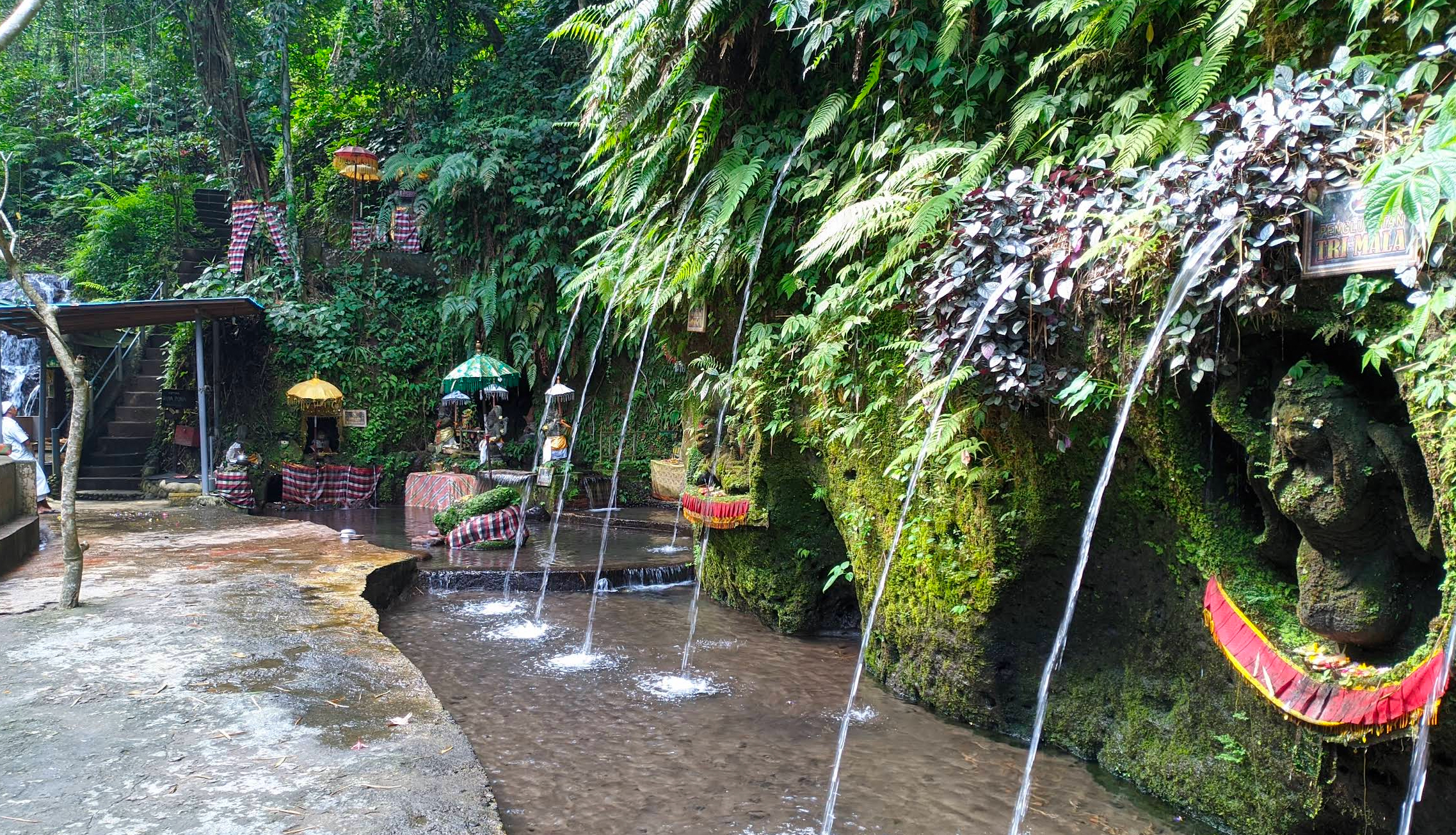 Ритуал проходит в спокойной обстановке. Здесь отличная прозрачная вода, ухоженная территория и возможность получить более медитативный опыт, чем в переполненном Tirta Empul.