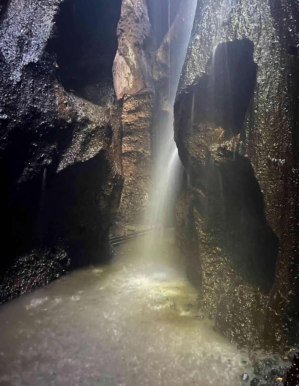 Водопад действительно красив, оттуда можно подойти близко, посмотреть на падающую воду, взобраться к пещере с украшенными скульптурами и резьбой. Пещера кажется волшебной, особенно когда капли воды падают сверху, красивая игра света и тени.