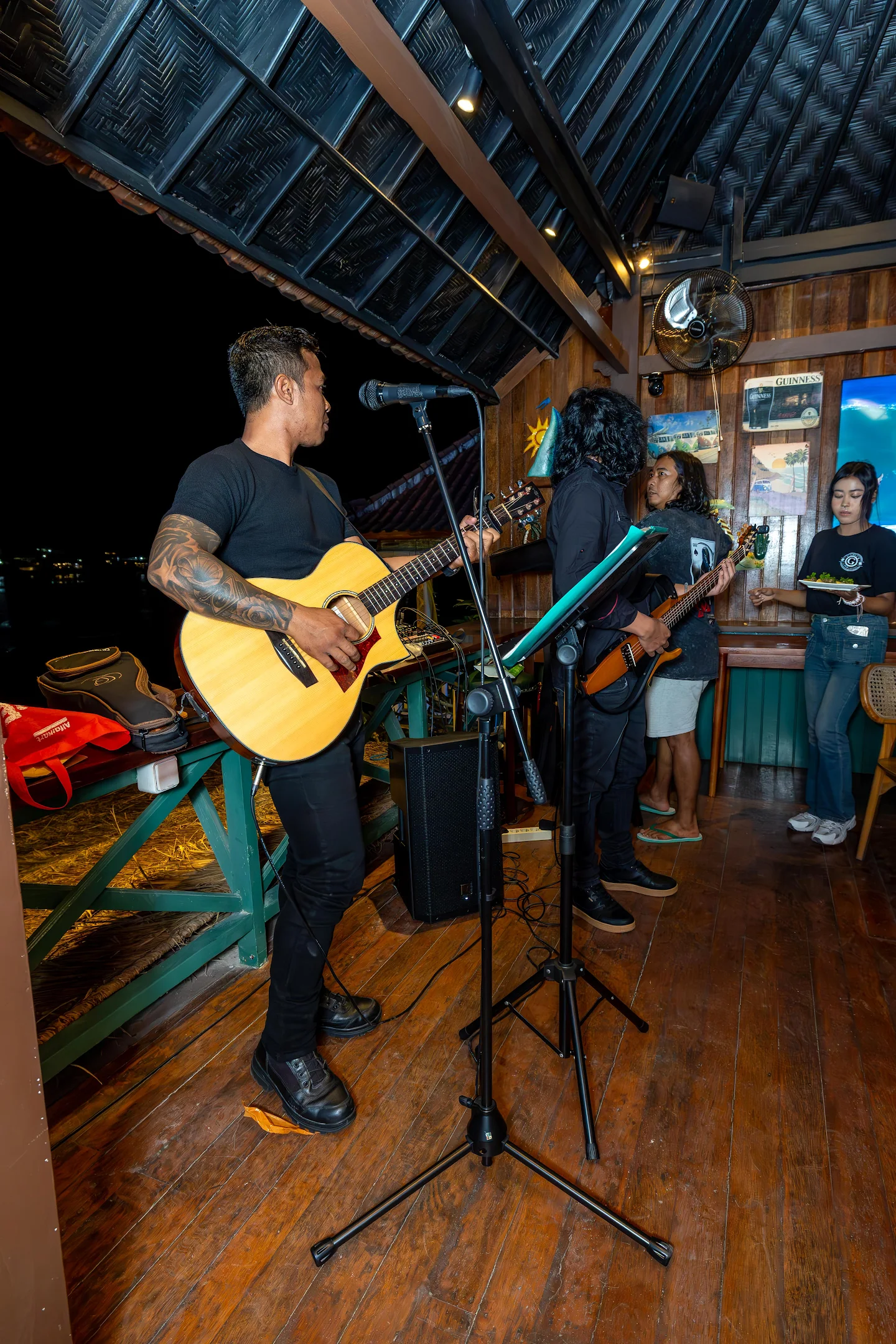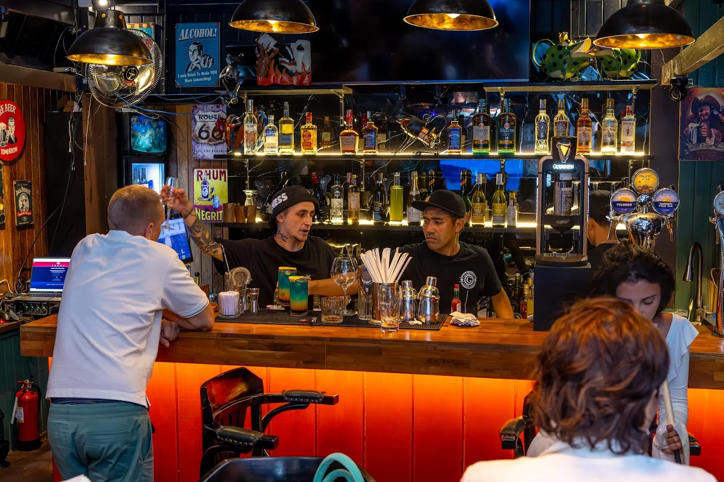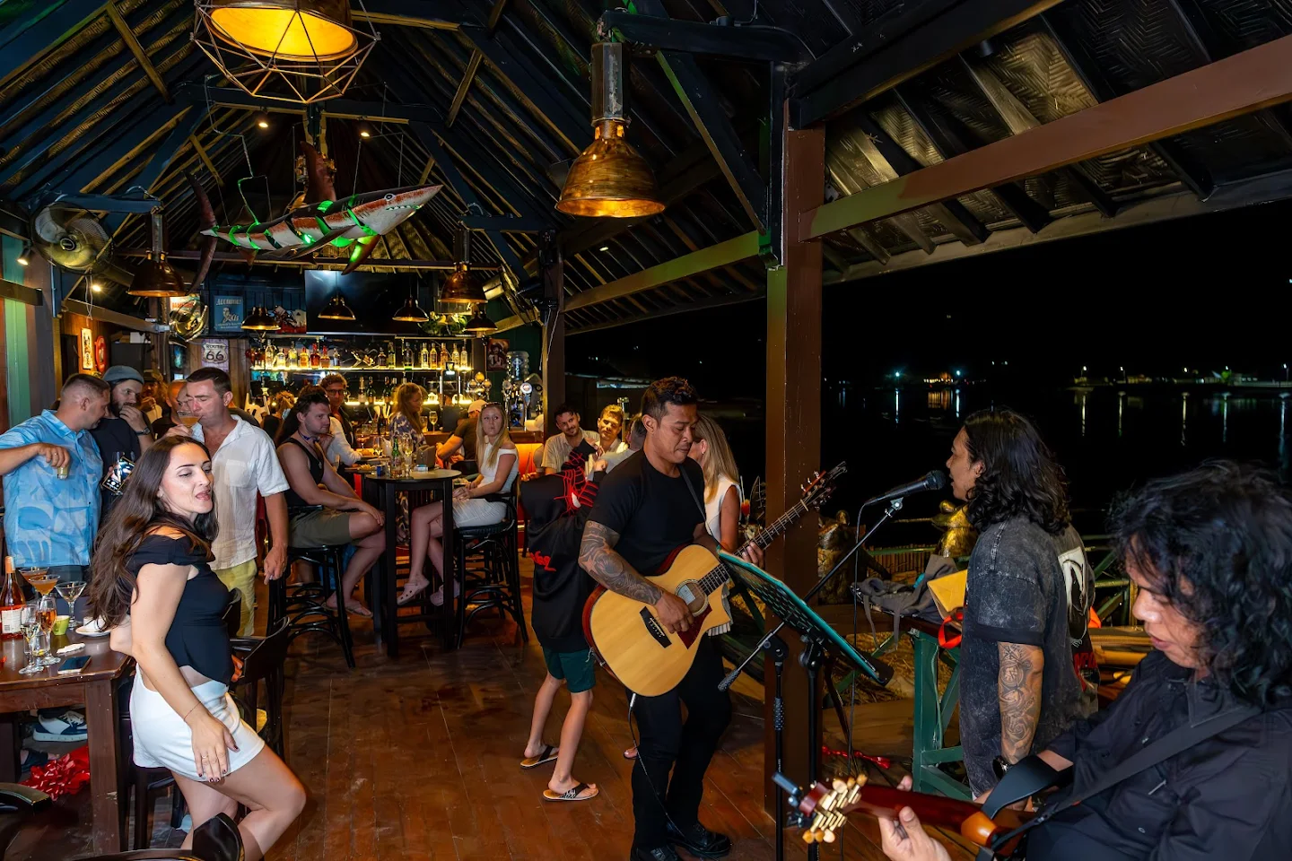 Интерьер Gabet’s pub продуман до мелочей. Кажется, что прямо сейчас сюда заявится толпа ирландских футбольных болельщиков, распевая песни. Но пока вокруг только туристы, которые пришли на концерт местной кавер-группы. Они тут проходят каждую пятницу, субботу и воскресенье. На экранах идет спортивная трансляция, а на балкончике стоит влюбленная парочка, наслаждаются шумом прибывающей воды и луной, которая отражается в океане.