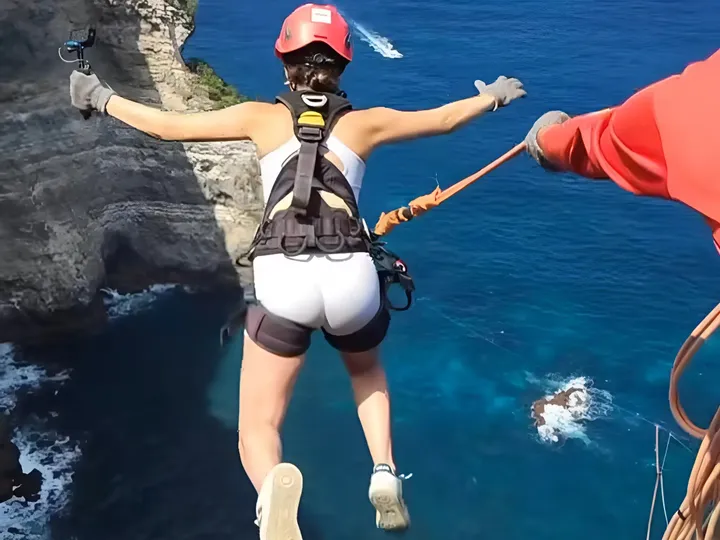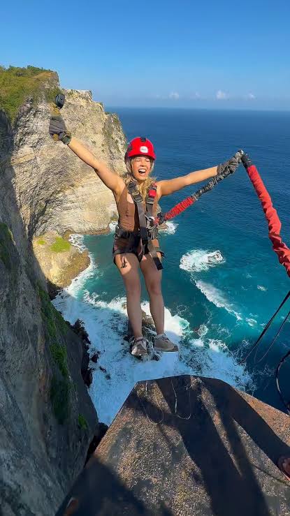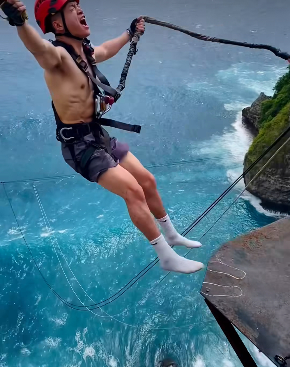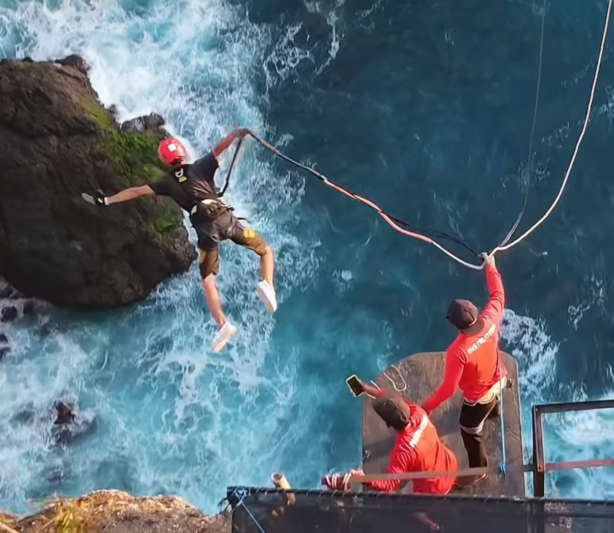 Многие любители острых ощущений сразу узнали локацию. Кадры сняты в Extreme park Bali, где до недавних пор можно было прыгнуть с веревкой со 130-метровой скалы. Цена прыжка — 2,7 млн рупий при оплате наличными и 3 млн рупий по карте. Аттракцион был запущен больше года назад.