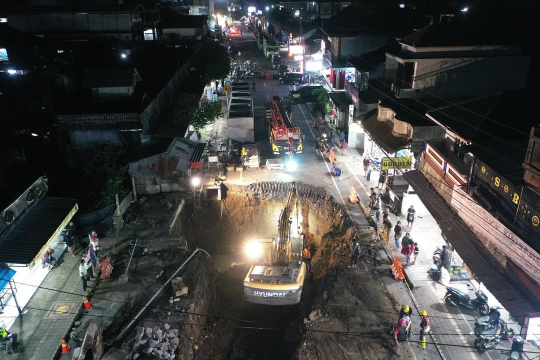 На одной из главных транспортных магистралей Бали — национальной дороге, соединяющей порт Гилиманук и Денпасар — внезапно провалился фрагмент дорожного полотна. Движение оказалось под угрозой: от проезжей части осталась лишь узкая полоса асфальта.
