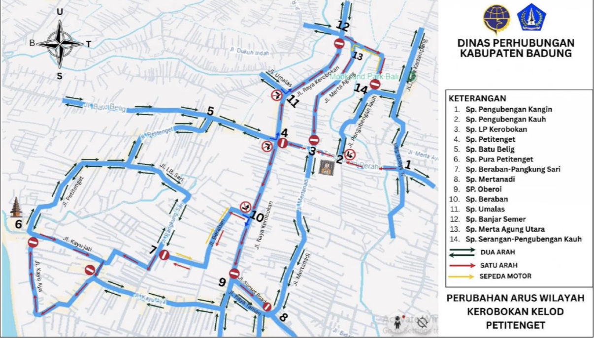 Улицы вокруг ключевых перекрёстков Керобокана, включая Petitenget и Batubelig, стали односторонними.