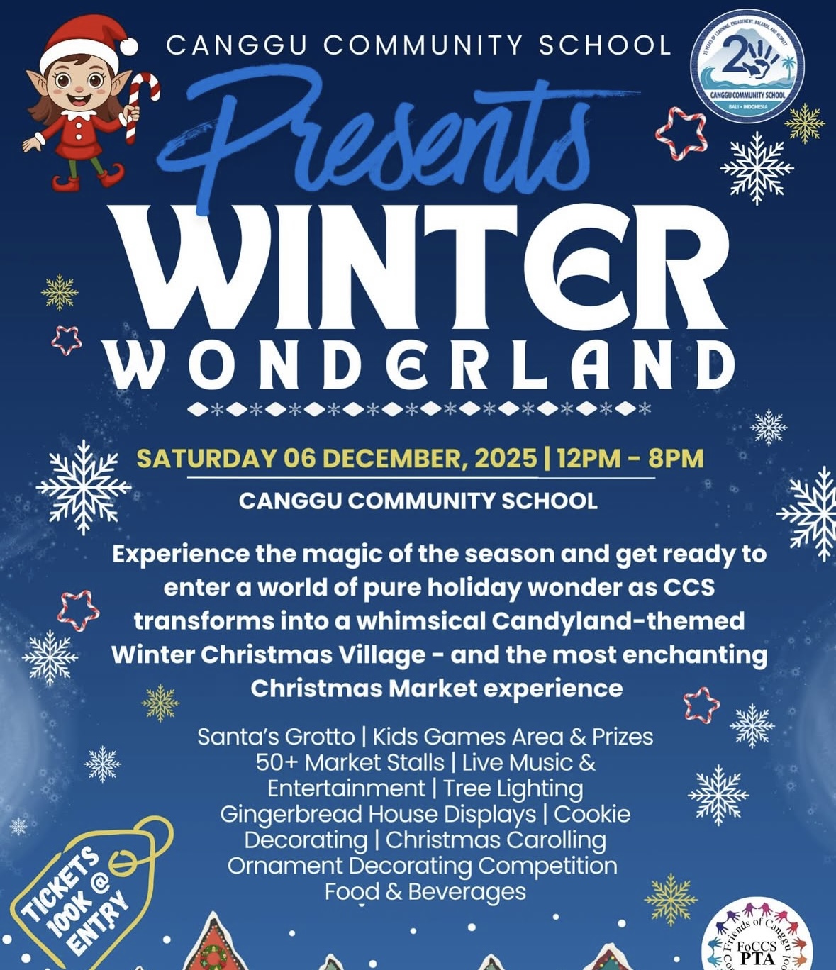 Canggu Community School на один день превращается в большое рождественское пространство для детей и родителей. На территории — тематическая Christmas Village в стиле candyland, с играми, активностями и маркетом.