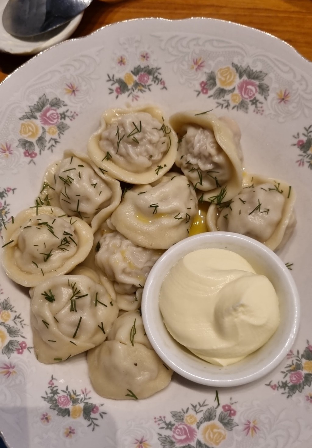 Небольшие пельмени, сделанные из тонкого теста. Мясо имеет ярко выраженный вкус, что некоторых может насторожить. Баланс специй. Также в меню есть вареники и сырники.