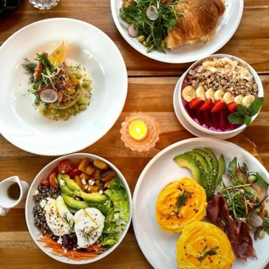 Здесь вы можете насладиться сытными завтраками, такими как шакшука, сырники, блинчики, тосты. Большие порции салата - 300г, окрошка, борщ, пельмени, вареники и, конечно же, десерты!