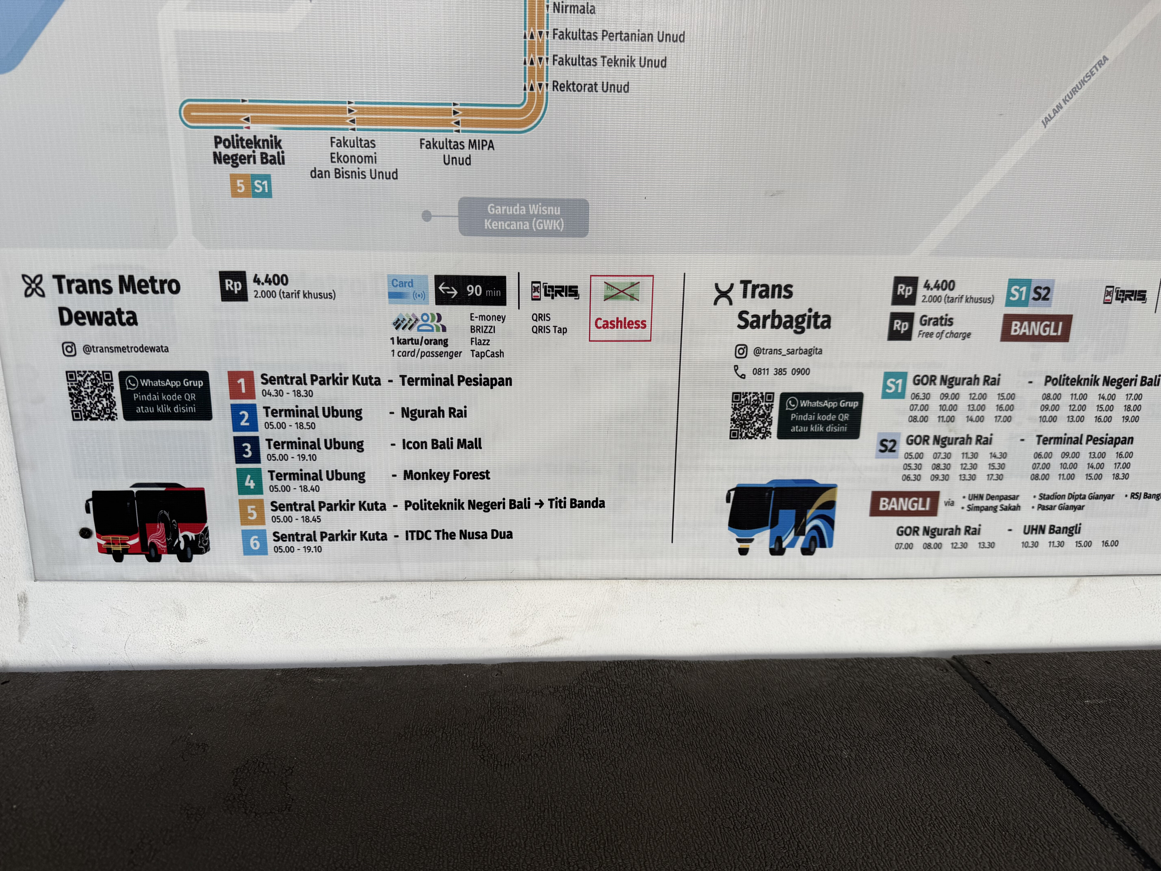 У Транс Метро Девата есть свой инстаграм. Также как альтернативу приложению TMD вы можете загрузить приложение Teman Bus в Playstore/Appstore. После загрузки выберите регион Бали и проверьте карту, маршрут и автобусные линии, чтобы добраться до места назначения.