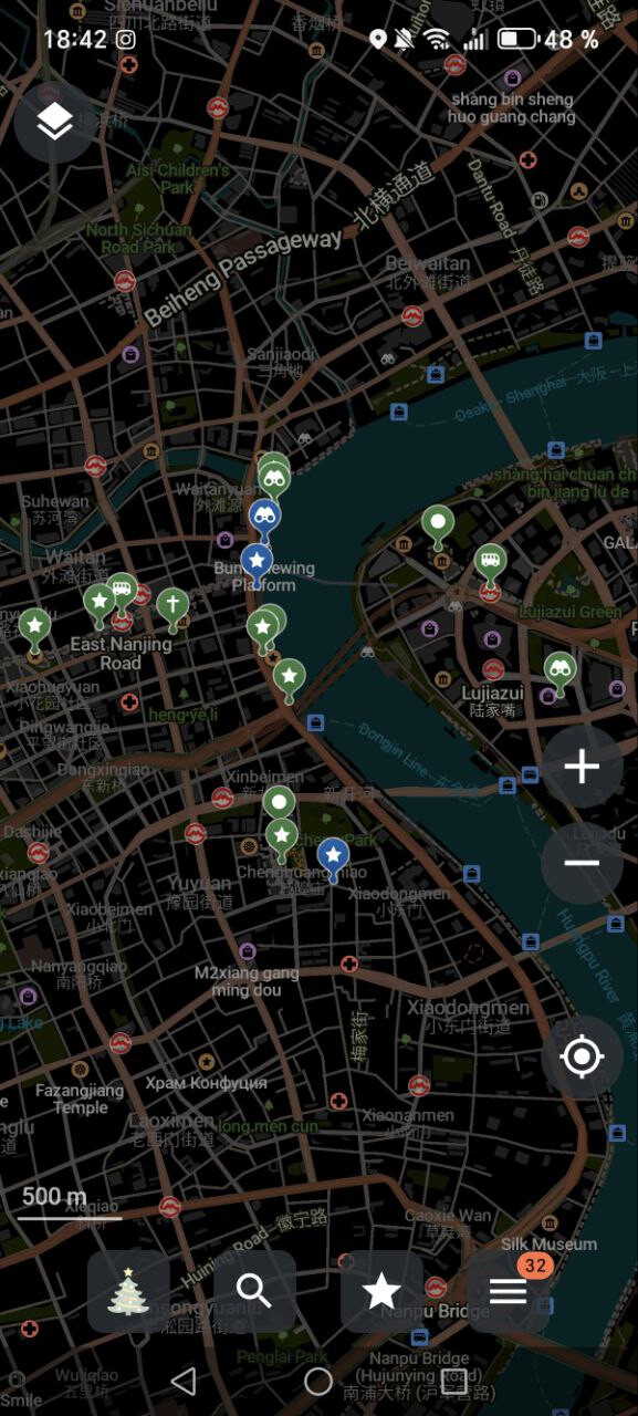 Потом едете куда советовали, 1 станцию метро. Там прибудете на пешеходную улицу, по ней прям прикольно погулять и посмотреть на различные магазины. Потом можно на набережную сходить. Далее ещё посоветовал бы сходить в старый район, там очень красивые здания в древнем китайском стиле. Судя по карте у вас есть мапсми, тогда ориентир old theatre. Он чуть ниже пешеходной улицы. По карте это самые нижние точки