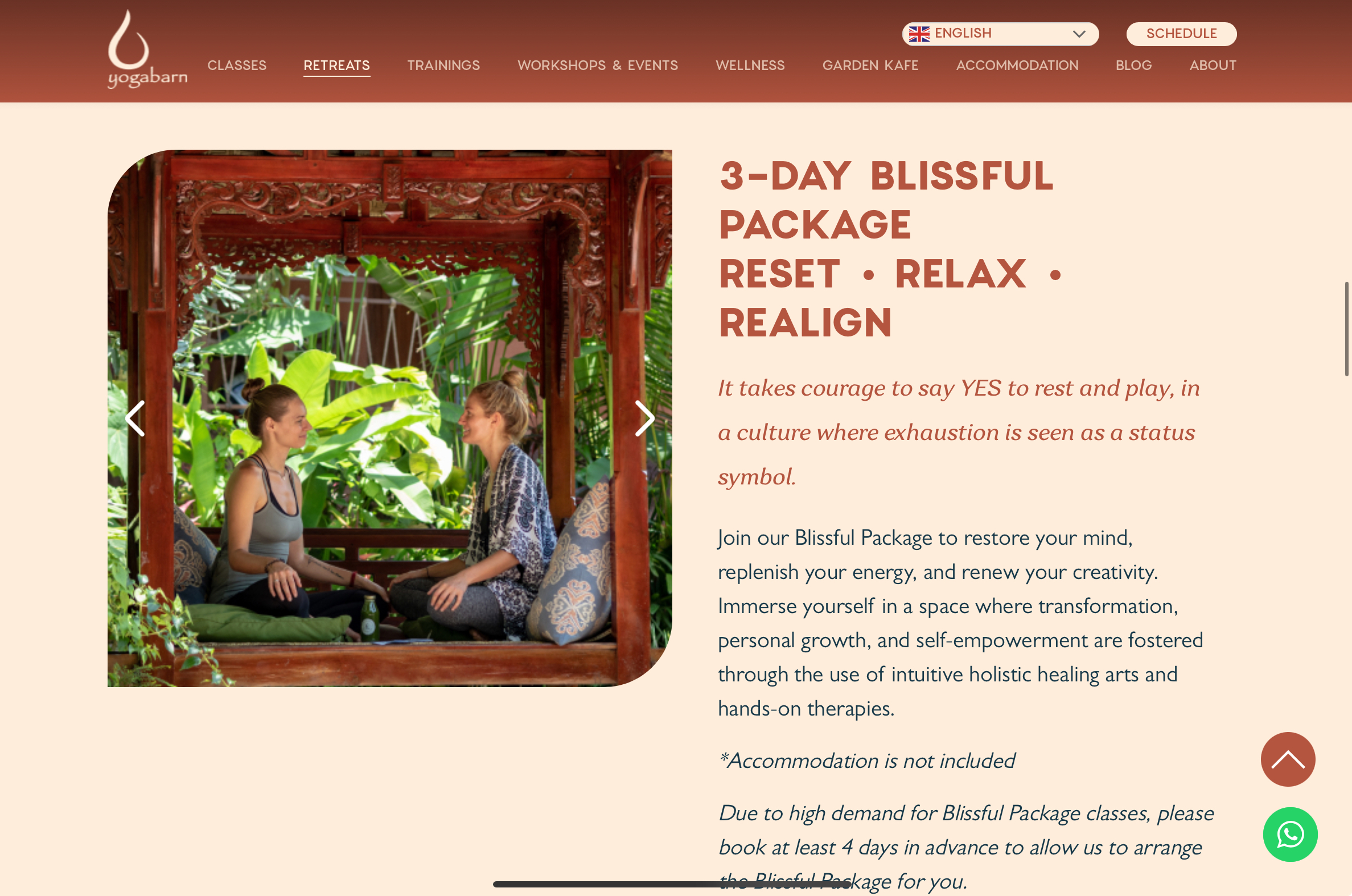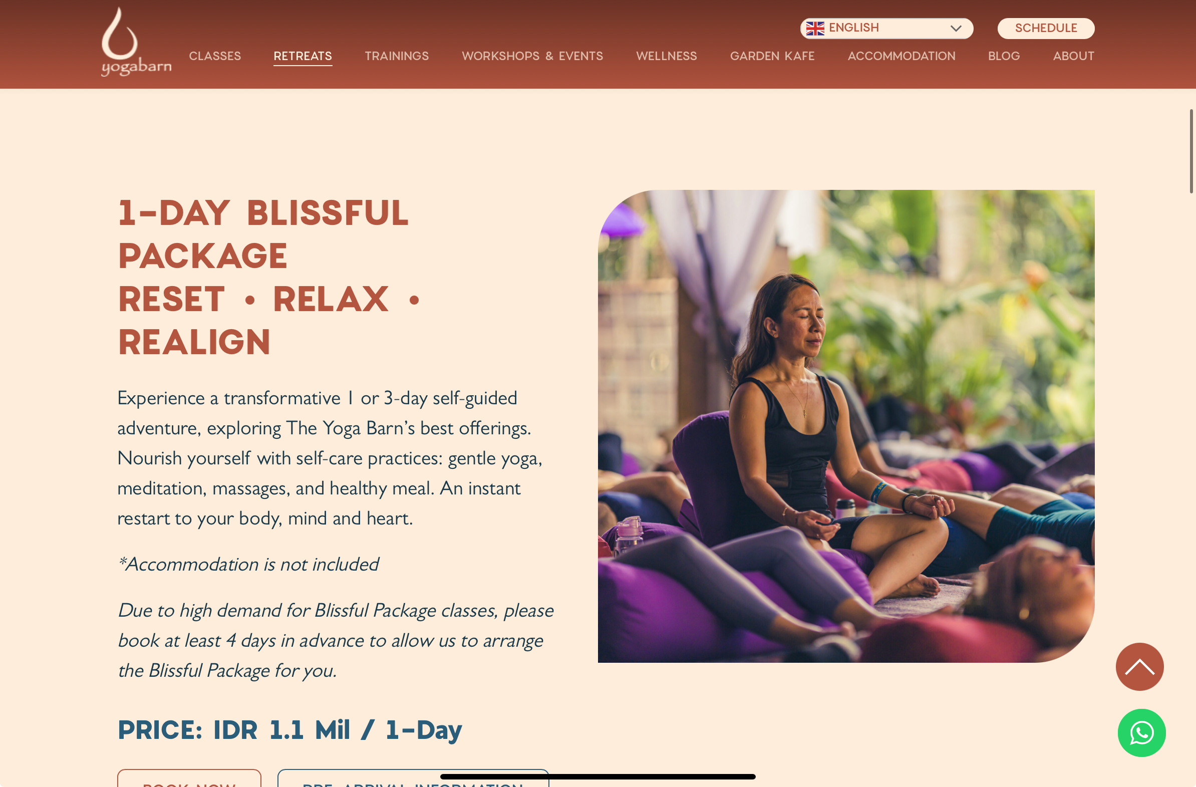 Если нет возможности подстраиваться под расписание и ваша цель - заняться йогой, медитировать и чередовать духовные практики с активным отдыхом, то просто бронируете жилье и выбираете желаемые занятия на ваши даты.