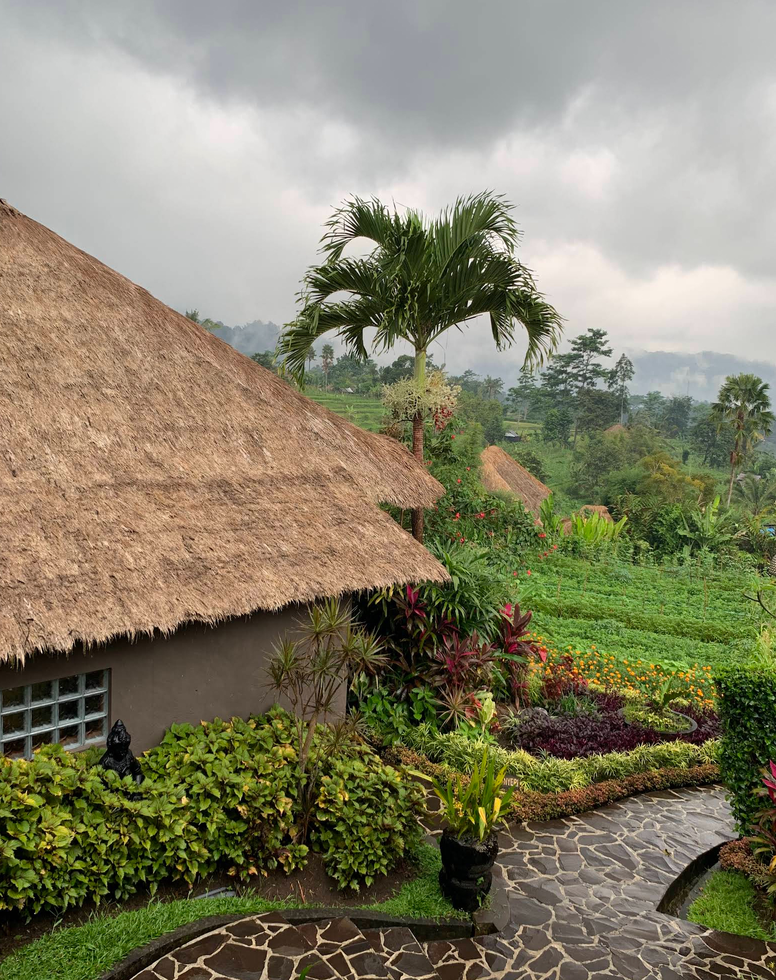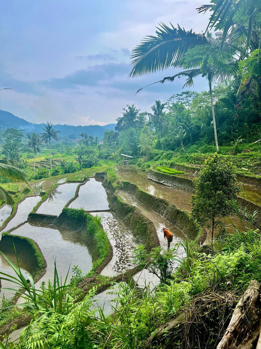 По пути можно сворачивать на разные тропы и останавливаться для фото. В сторону Telaga Tawang очень живописная дорога, по пути виды на вулкан Агунг и террасы.