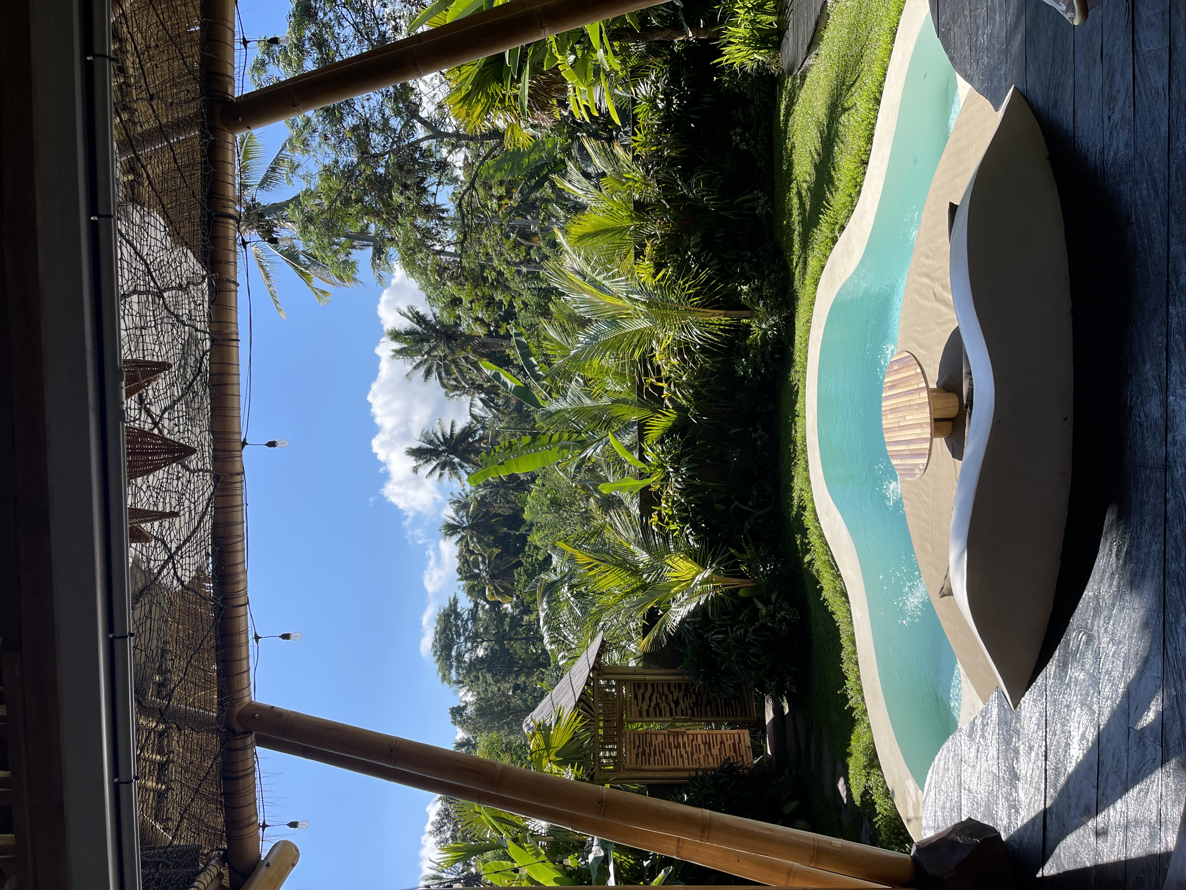 Прекрасный отель с традиционным балийским стилем, с открытым бассейном, все номера с шикарным видом на рисовые поля, во многих комнатах есть ванны. Правда, набрать было затруднительно и горячая вода быстро закончилась.