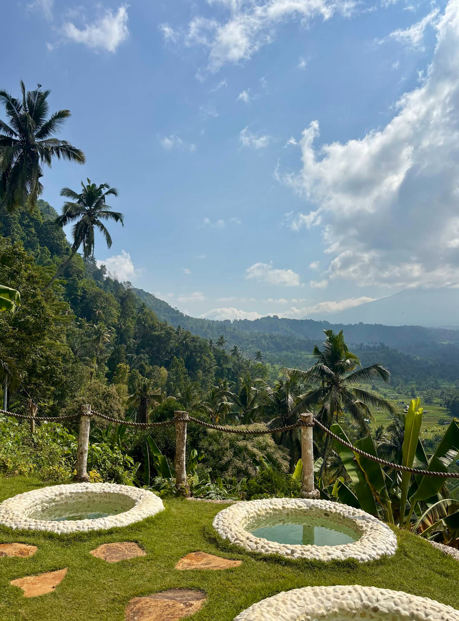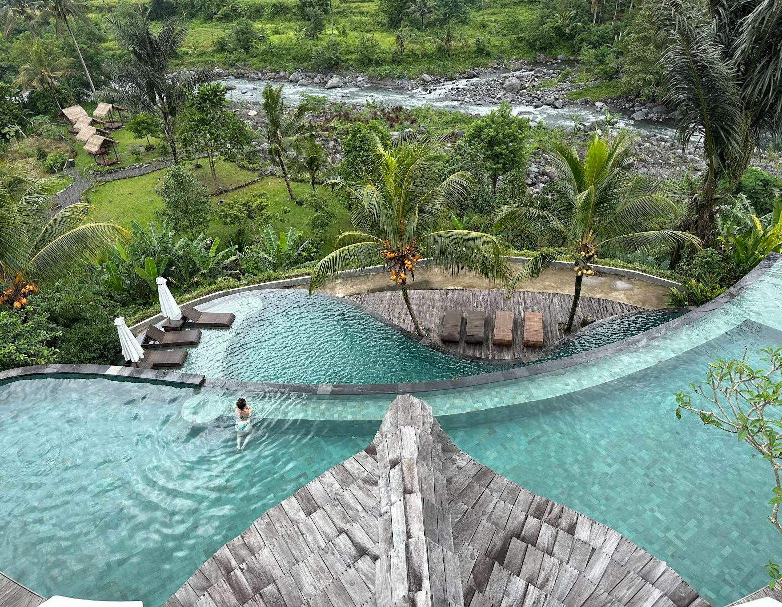 Это один из самых фотогеничных водопадов на Бали. Некий каскад с природным инфинити-бассейном, из которого открывается панорама на джунгли и рисовые поля.