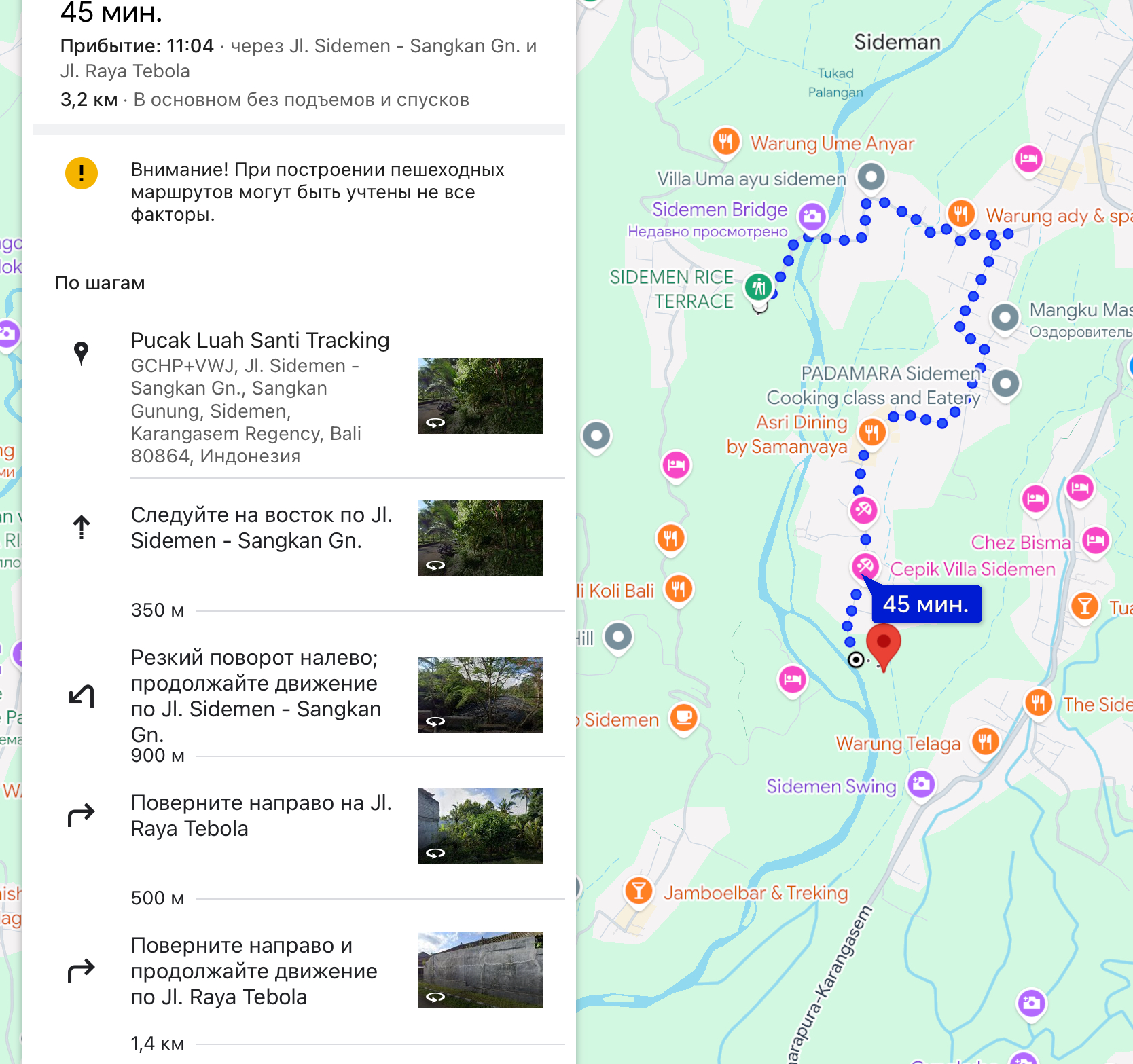 Большую часть времени маршрут не является реальным путем, его нет на Гугл-картах, поэтому если вы попробуете это без гида, есть большая вероятность, что вы заблудитесь, либо упретесь в тупик.