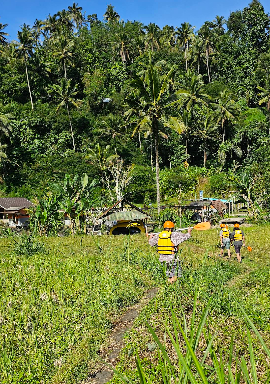 Рафтинг проходит по бурной реке Telaga Waja (16 км, 2,5–3 ч), с порогами, водопадами и спуском с плотин, а тюбинг — по более спокойной реке Tukad Unda, идеально подходит для семей и новичков. С виду может показаться скучно, но как только вы садитесь в лодку и начинаете сплав, вас ждет скорость, камни, обрывы. Вы остановитесь у красивого водопада и посмотрите на нетронутую балийскую природу. Весь сплав около 2,5 часа.