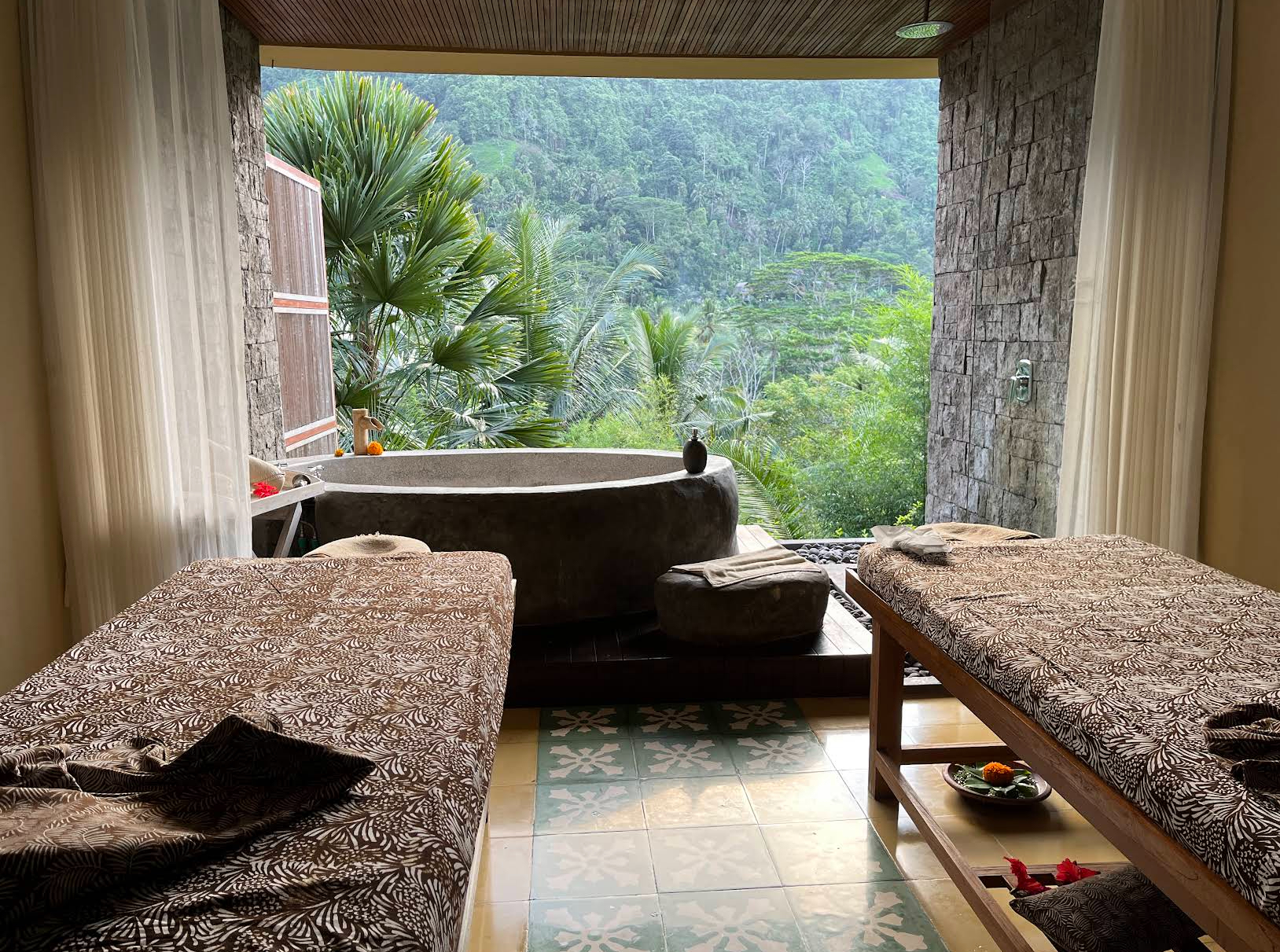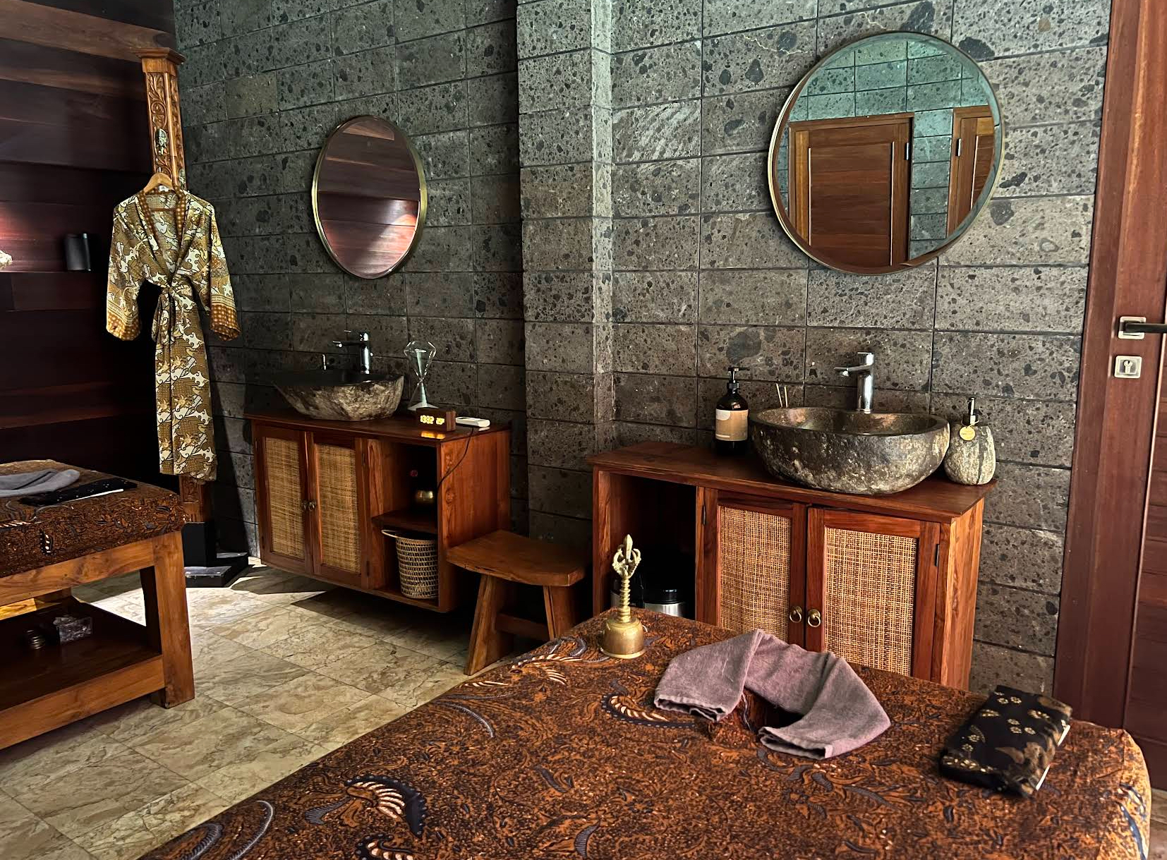Массажный салон при отеле Wapa di Ume Sidemen, расположенный на вершине Сидемена, с панорамными видами на рисовые террасы и долину. В салоне царит полное уединение: три просторных комнаты оформлены в тропическом современном стиле.