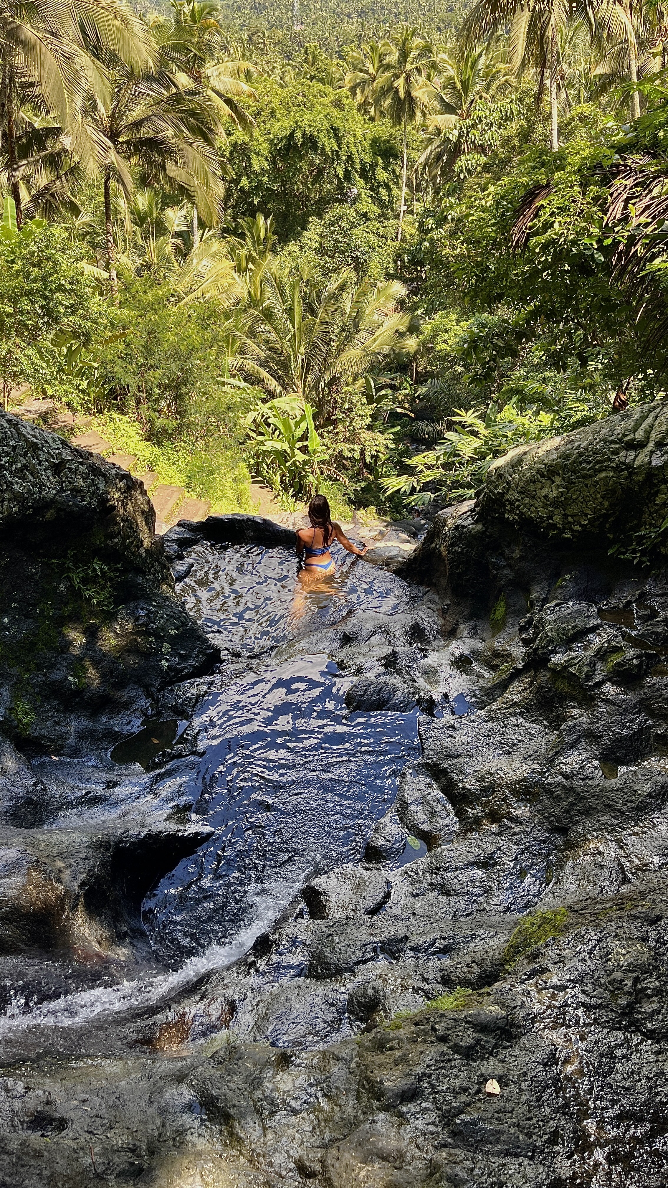 Все вокруг очень чисто. Можно пробраться и к самому водопаду, а рядом индуистские источники для купания, святое место, куда приходят местные. Берите с собой саронг или полотенце, без них нельзя подняться к статуе Брахмы.