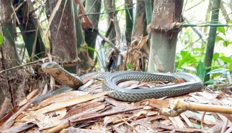 «Местные жители сообщили, что наткнулись на самку королевской кобры. Ее длина 266 сантиметров, обхват тела 13 сантиметров. Она устроила гнездо в бамбуке длиной 91 сантиметр», — сообщила Ни Путу Астрид, председатель Yayasan Reptil Asih Tabanan. Кобра высиживала 32 яйца. Змею и кладку немедленно отправили в питомник.