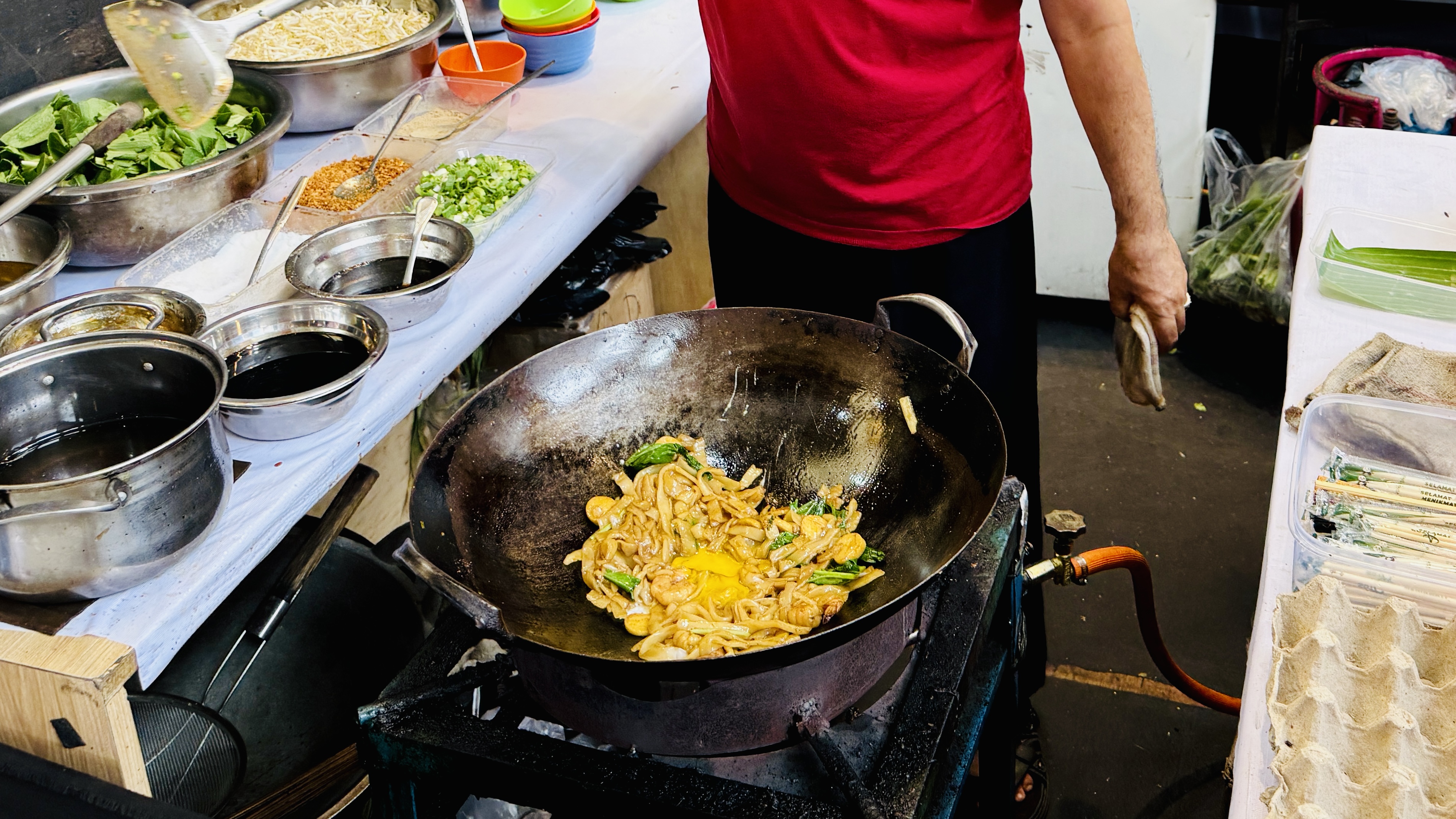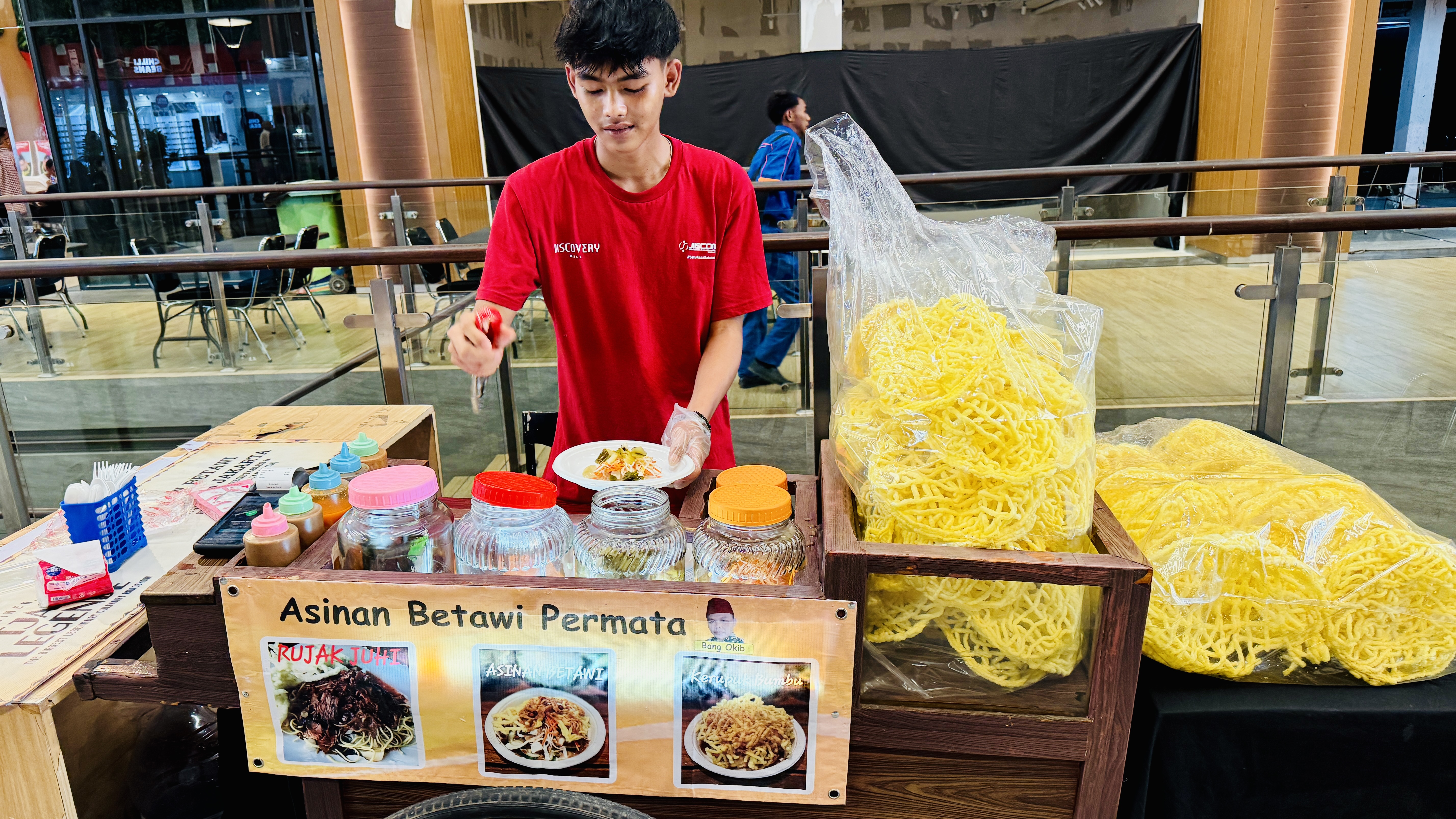 «Крупнейшее легендарное кулинарное шоу» - гласила афиша на входе в Discovery mall. Внутри все скромнее. С утра в будний день людей на стихийном фуд-корте оказалось совсем немного. Сонные продавцы лениво раскладывали заготовки и нарезали продукты, разогревали масло в воках.