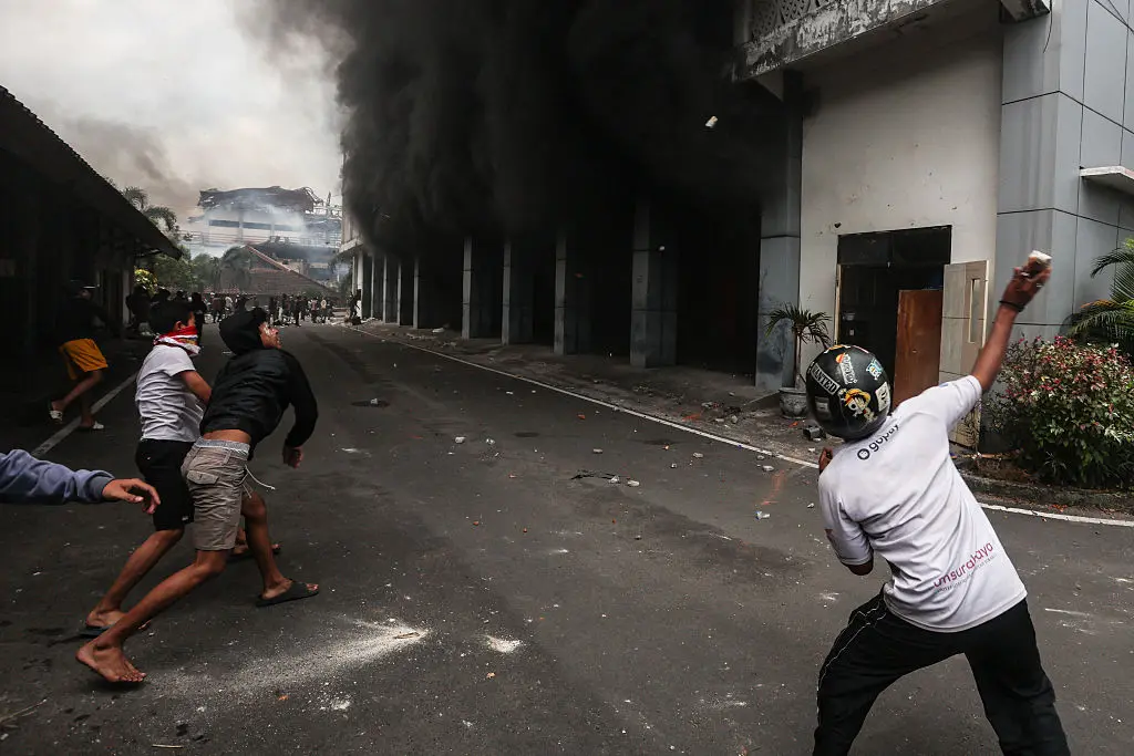 В Макассаре (Южный Сулавеси) толпа подожгла здание регионального парламента, где погибли три человека. В Джокьякарте найден мертвым студент с телесными повреждениями — правозащитники утверждают, что он был избит силовиками. В Чиребоне протестующие разрушили памятник, сделанный из конфискованных мотоциклетных глушителей. В Сурабае и Соло были подожжены здания и атакованы объекты полиции. По всей Яве, а также на Борнео и Суматре, протесты сопровождались поджогами и разграблением домов политиков.
