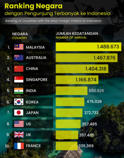 Чаще всего в Индонезию приезжали туристы из Малайзии, Австралии, Китая, Сингапура и Индии. В десятку также вошли Южная Корея, Япония, США, Великобритания и Франция. Эти цифры подтверждают: страна укрепляет статус одного из самых привлекательных направлений Азии.