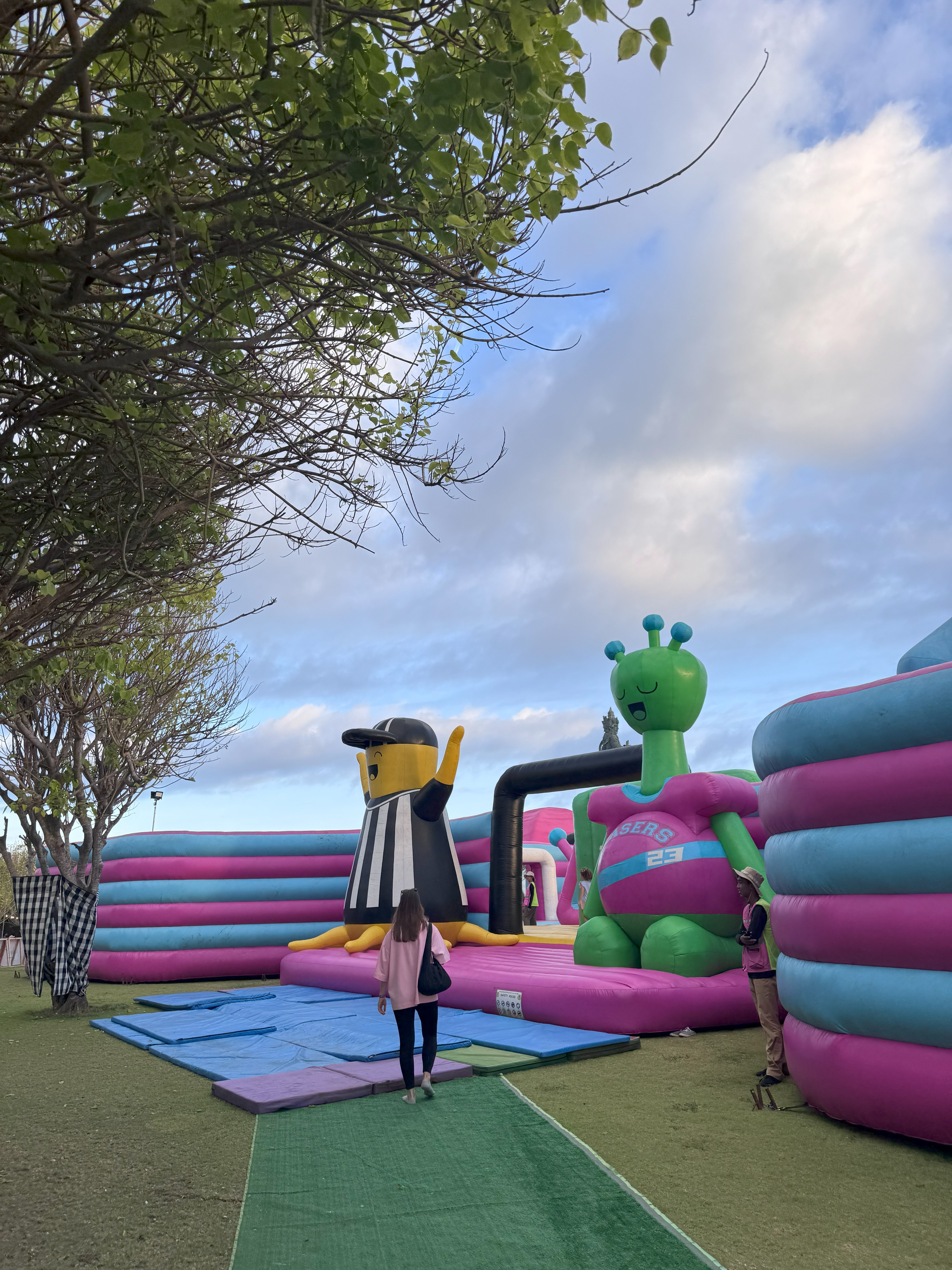 На целый месяц Peninsula Island в Нуса-Дуа превратился в гигантский город батутов: там расположился The Big Bounce парк.