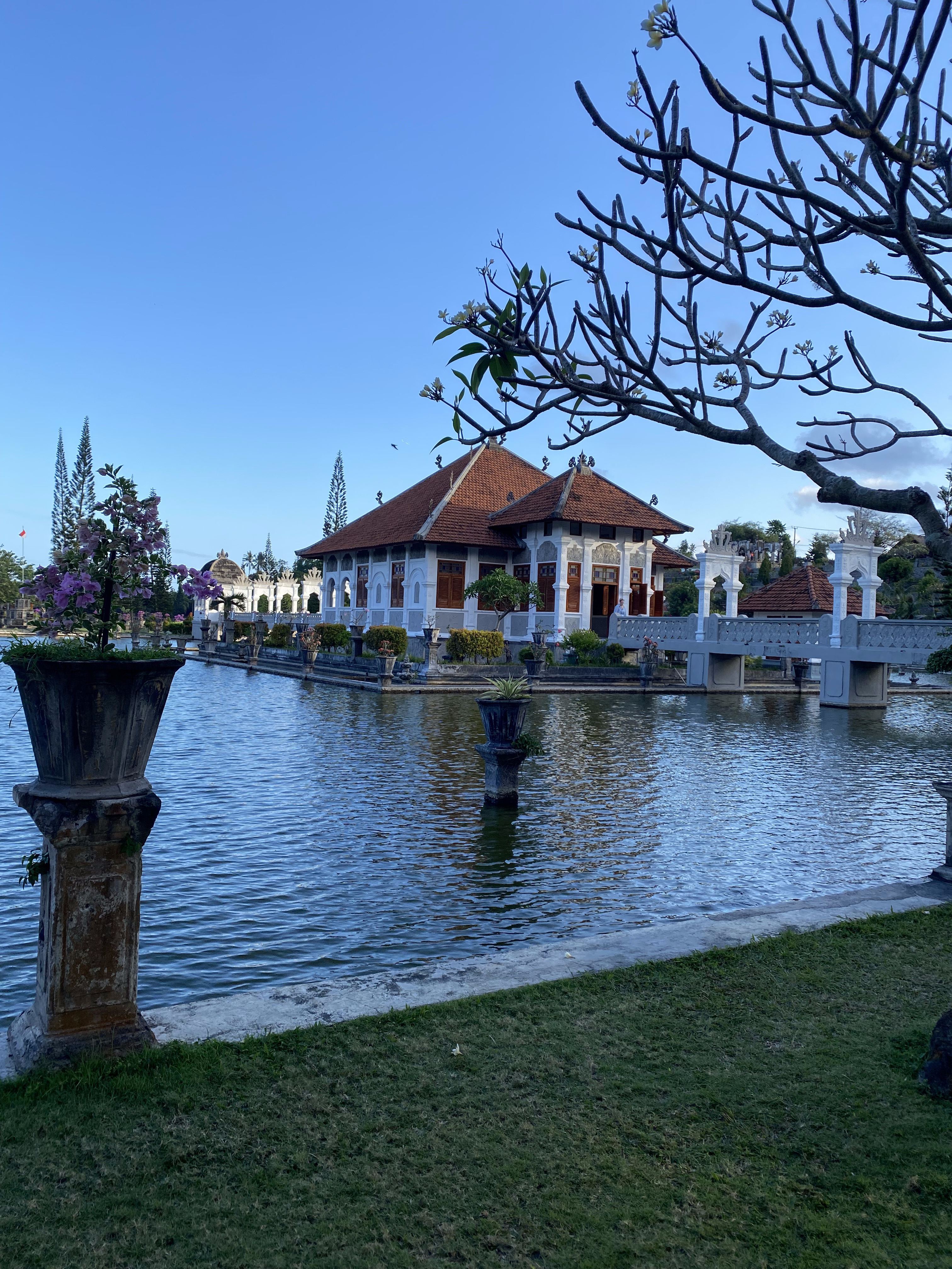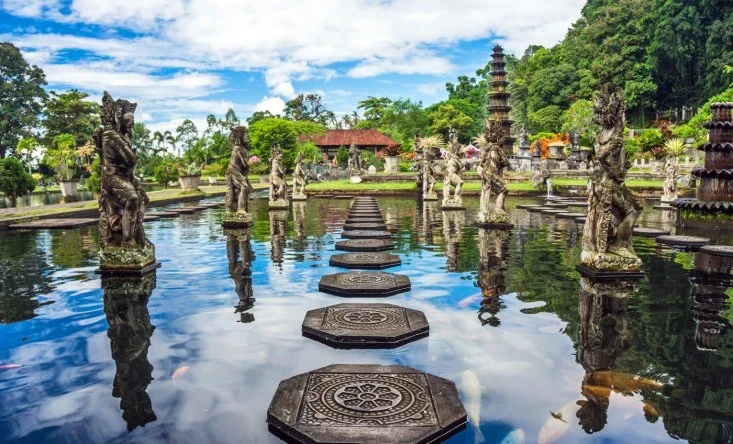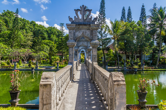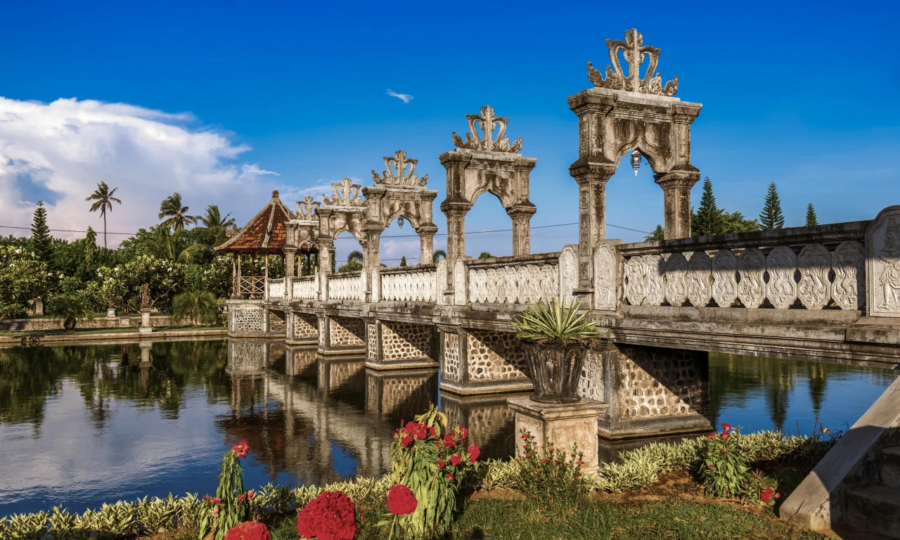 Taman Ujung — это водный дворец, в котором главное не здания, а пространство между ними. Здесь много воздуха, воды и дальних перспектив. Длинные аллеи, отражения в водоёмах, мосты и лестницы создают ощущение неспешной прогулки, где не хочется торопиться и говорить громко.