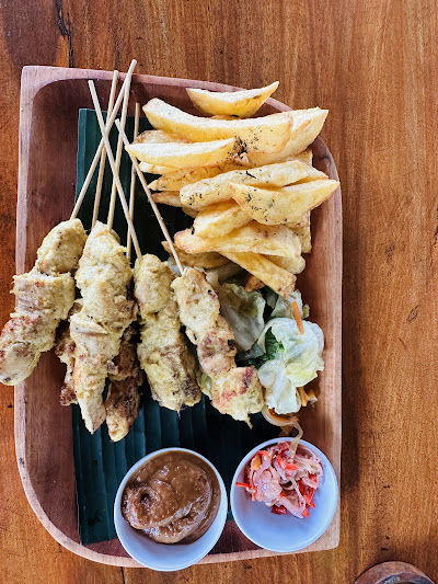 Warung Beach – очень простой местный варунг с рыбным сатэ и рыбными блюдами по очень демократичным ценам, дружелюбные хозяева. Цены - от 30 до 60к за блюда, 15-25к - напитки. Подойдёт, если хочется простого, сытного обеда без излишеств, без необходимости далеко ехать и без туристического пафоса.