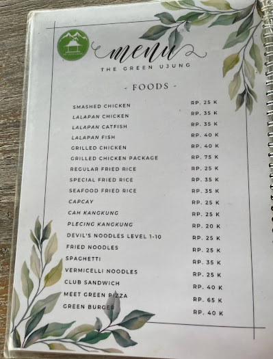 The Green Ujung Karangasem – приятное кафе в 3 минутах езды от дворца Таман Уджунг, с зелёной территорией и ощущением спокойного загородного места. Меню смешанное: есть морепродукты, блюда с курицей, местные блюда и лёгкие закуски, а также кофе и прохладительные напитки. Цены выше, чем в варунгах: рыба на гриле - 90к, курица на гриле - 75к, рыба с чипсами - 45к, соки - 25-30к. Хороший вариант для еды сразу после дворца — когда хочется не слишком дорогой и не слишком «туристический» обед в спокойной обстановке, без необходимости далеко ехать.